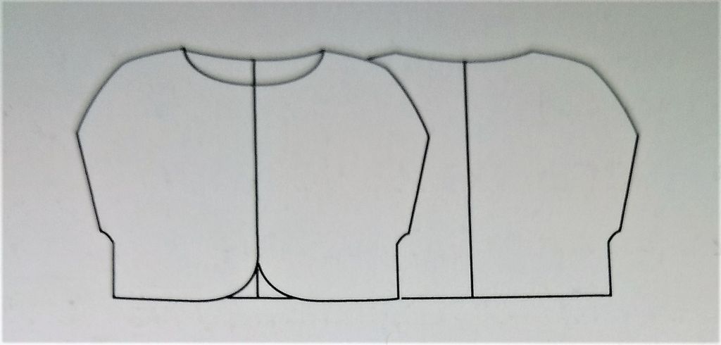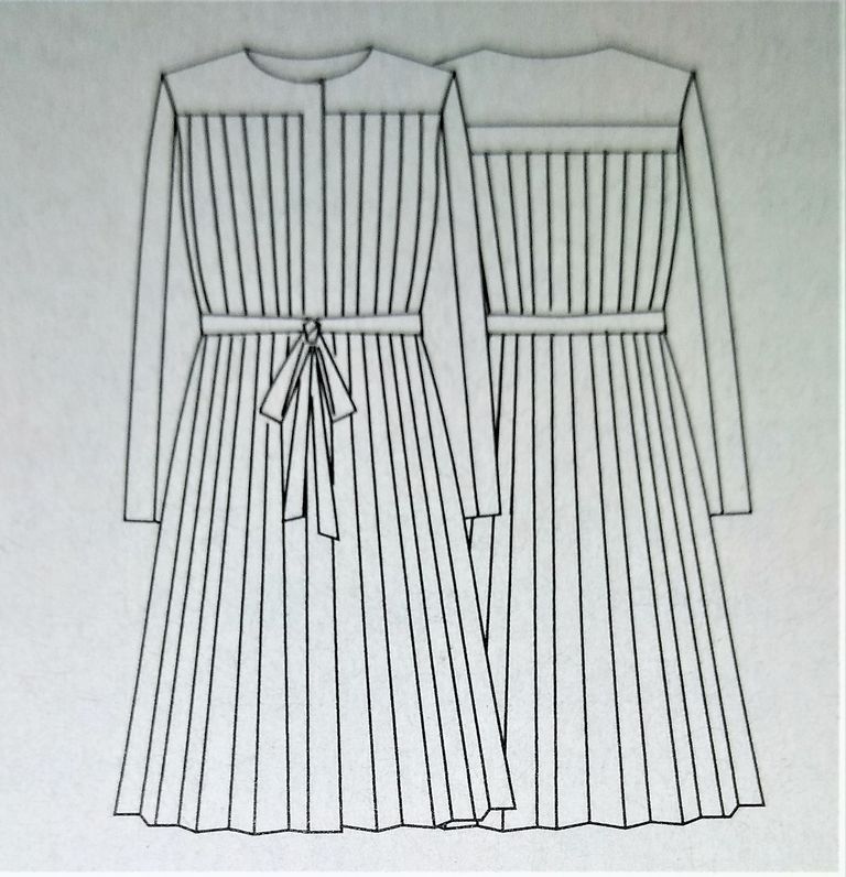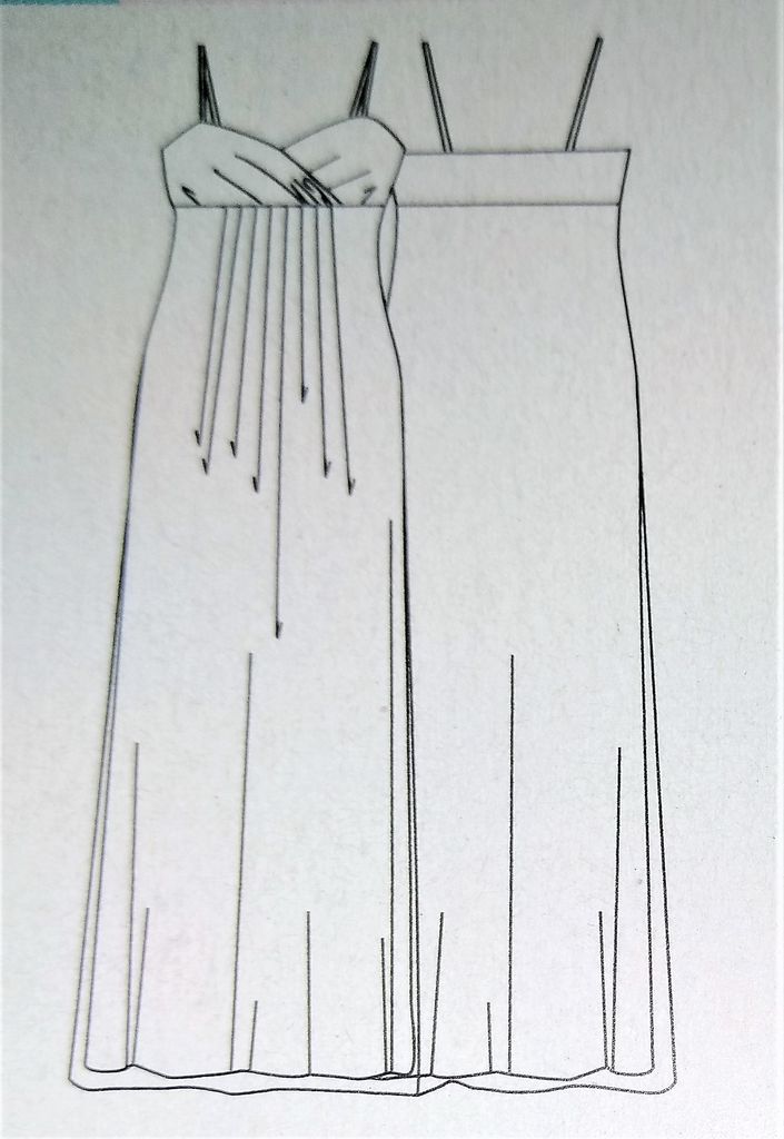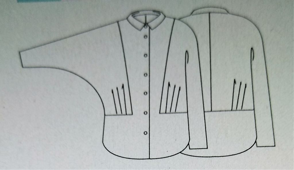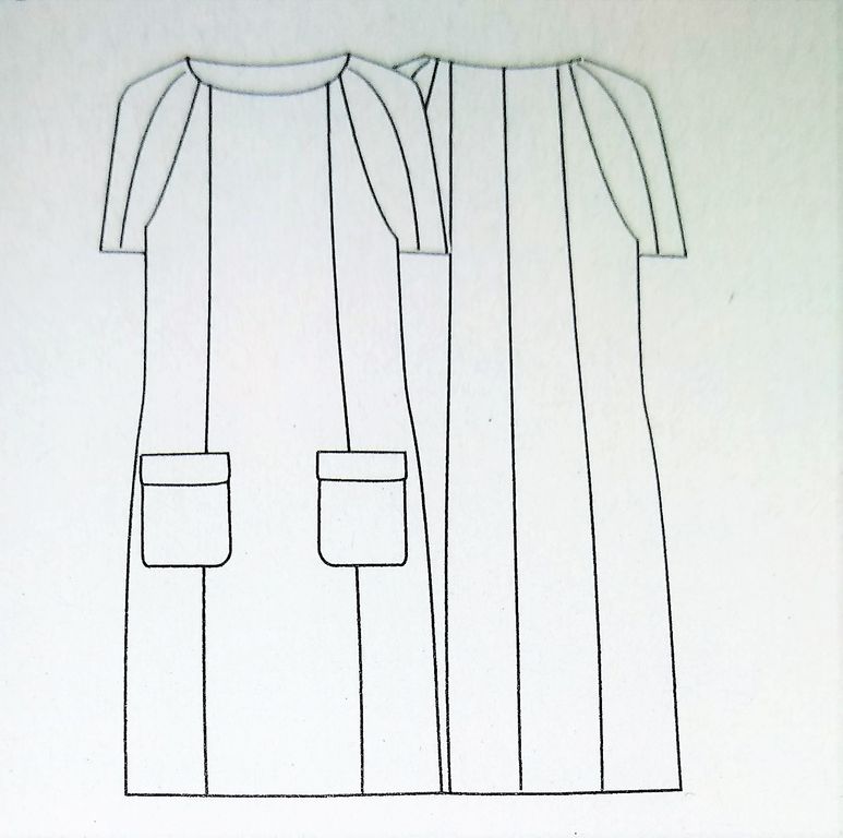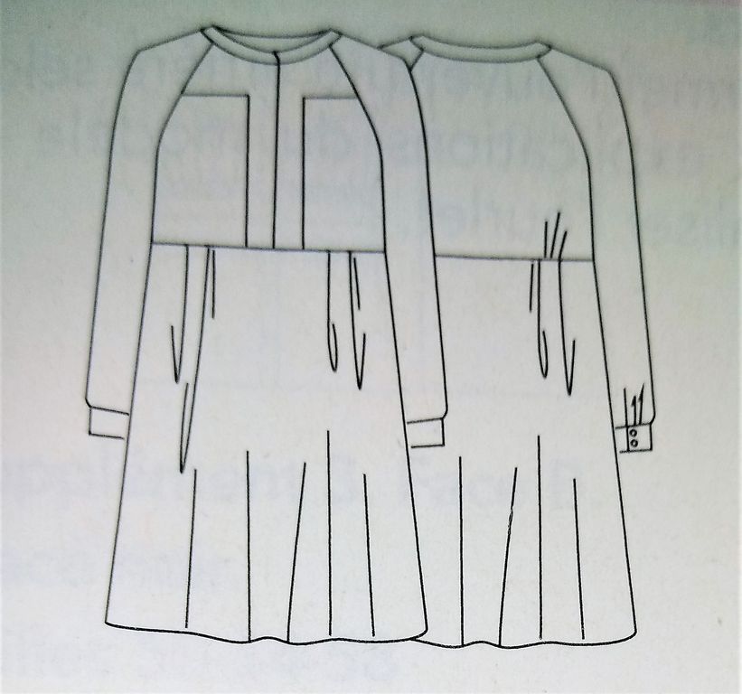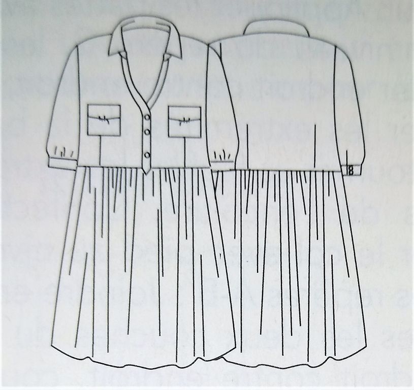 J’adore ces deux pièces mais séparément, en effet trop de volume tue le volume selon moi. Le gilet long est réalisé en maille, légèrement évasé. Le point de mire et son grand col qui tombe en cascade sur le devant. Les emmanchures sont échancrées. La robe saumon dansante est elle aussi confectionnée en maille. Ses manches trois quart sont raglans. Le devant dispose d’une couture au milieu devant ce qui permet d’avoir plus de volume et de finir les pans en pointe. Le col est façon bénitier avec une longue bande pliée en deux et cousue sur la profonde encolure ronde. Ils sont tous les deux en tailles unique taille 54.