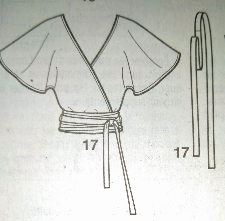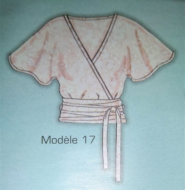 Que dire de ce top, comme vous pouvez le voir, il n’a pas de photo. Il possède des manches kimonos larges. Le devant est de forme porte-feuille avec les liens à nouer et une ceinture à rajouter. Il est en taille 38/40 – 42/44.