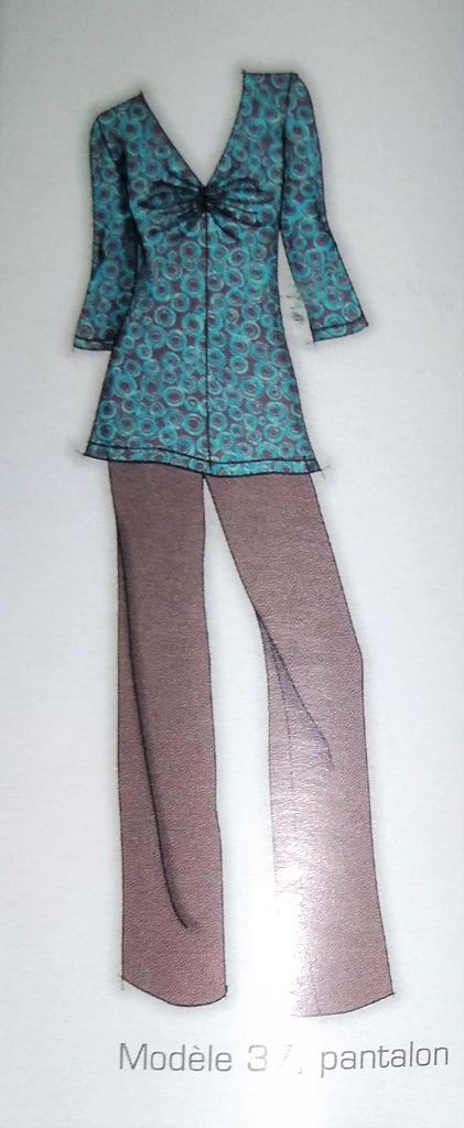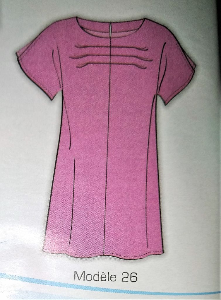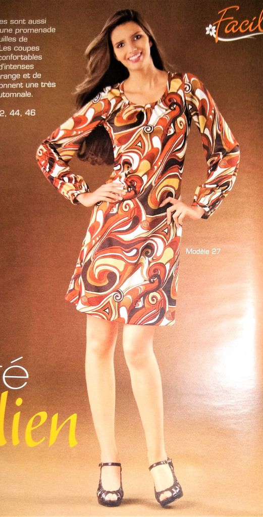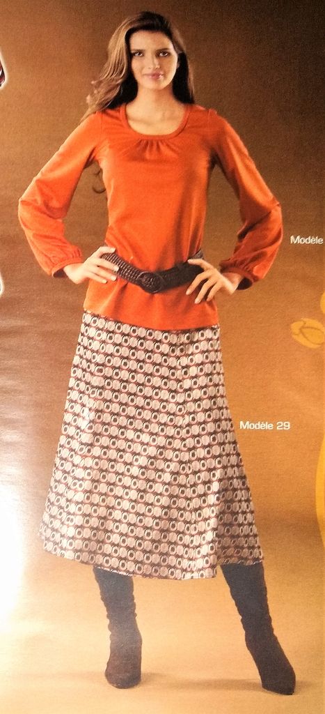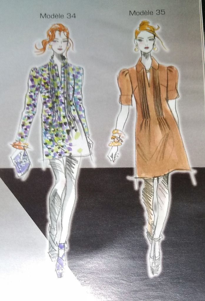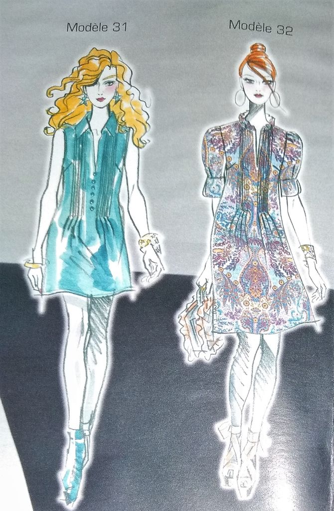 Mon dernier coup de cœur est pour une tunique qui part sur la même base que le précédent modèle. Les volants descendent bas en cascade et une large bande de jersey faisant office de mini-jupe vient faire blouser le top. Il est en tailles 40/42 – 44/46 – 48/50.