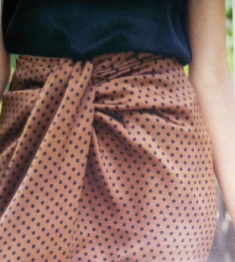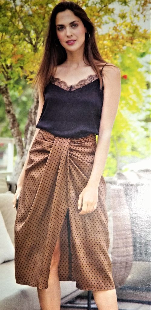 Mon dernier coup de cœur est pour cette jupe parfaite pour l’été , et elle aussi un brin rétro je la verrai bien dans un tissu imprimé tropical. Elle est droite , avec un joli drapé façon nœud. L’ouverture sur le devant permet de donner de l’aisance et donc du confort. Elle se ferme à l’aide d’une fermeture invisible dans le dos. Elle est en taille 40 – 44 – 48.