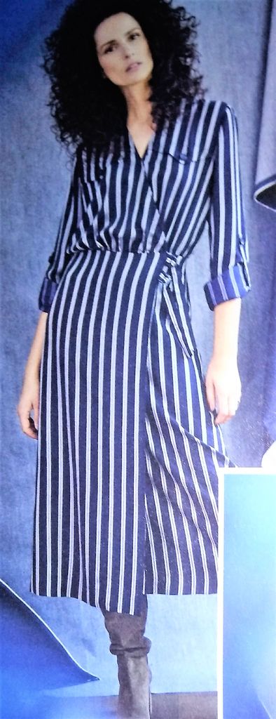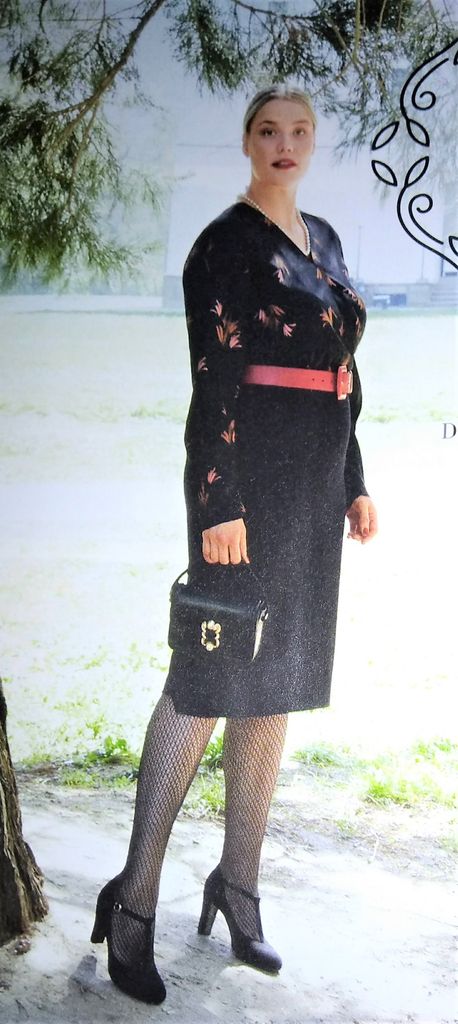 Mon dernier coup de cœur est pour cette robe fourreau elle aussi en grandes tailles. Le haut est de forme croisé avec un décolleté plongeant. Les manches longues sont froncées dans le bas sur le poignet qui se termine en pointe. La jupe elle est de forme crayon. Cette robe va du 44 au 52.