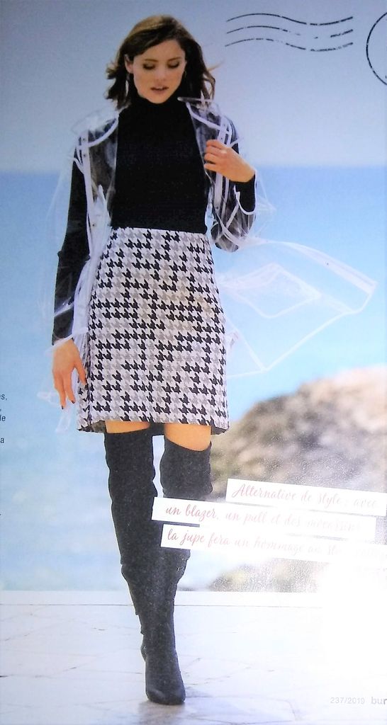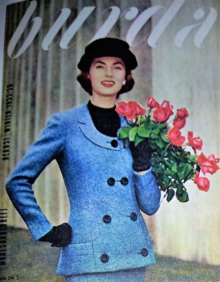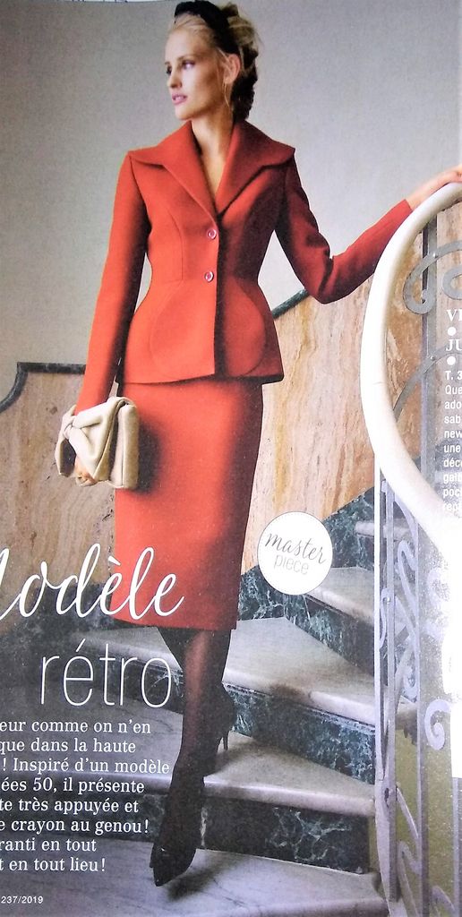 Vous allez adorer le modèle rétro revisité. Il s’agit d’un tailleur façon new-look typique des années 50. J’apprécie particulièrement retrouver dans chaque Burda un patron rétro pas vous?