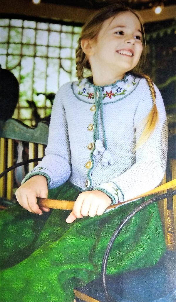 Il ne faut pas oublier les tricots du mois, originalité d’ailleurs avec un modèle traditionnel de gilet Dirndl et les chaussettes assorties.