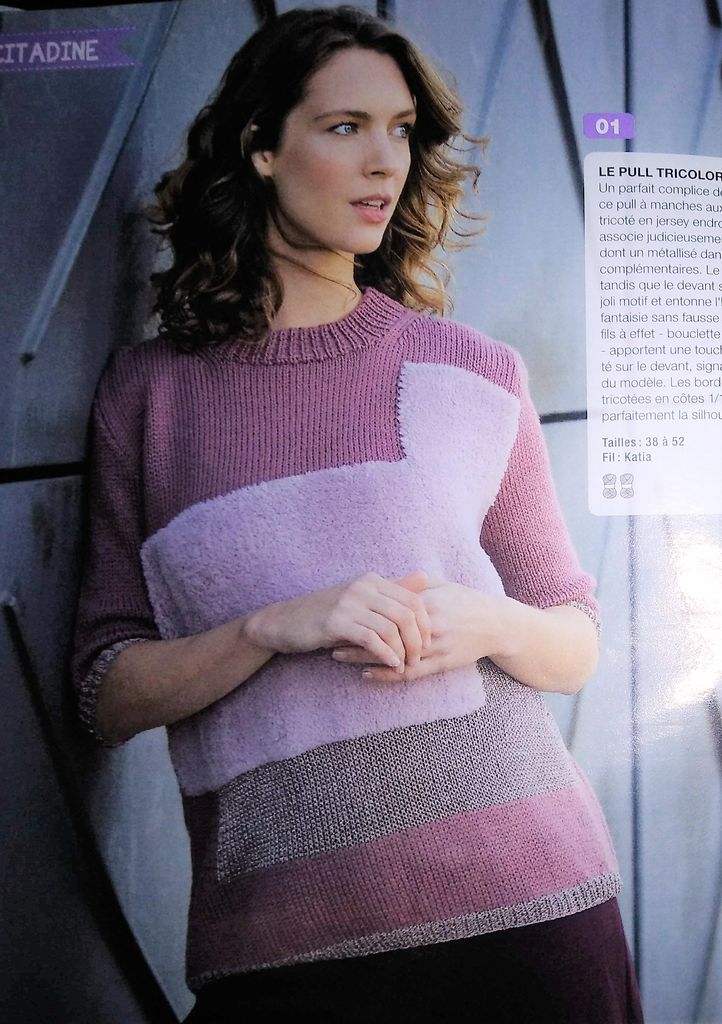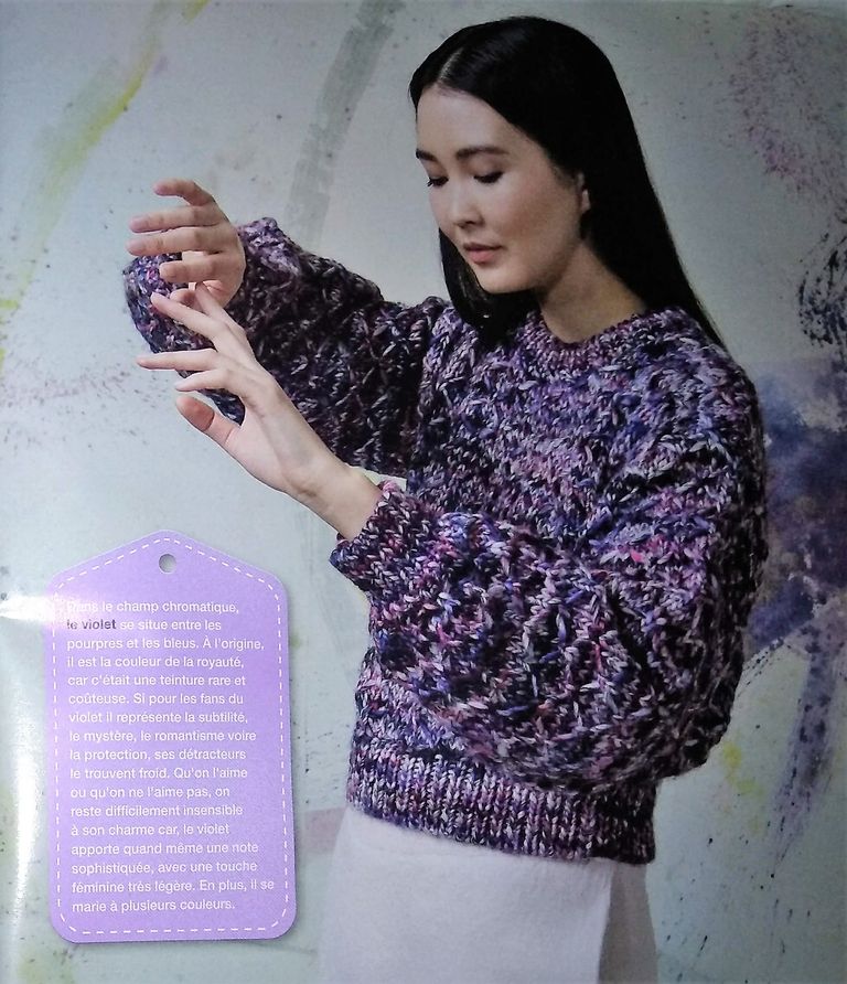 Les blocs titres de chez « Fait Main Tricot » sont le plus souvent basés sur les couleurs, car c’est ce qui fera la différence, le coloris du fils comme le tissu en couture. Le violet, aura une ligne dédiée, avec des pièces douces et romantiques.