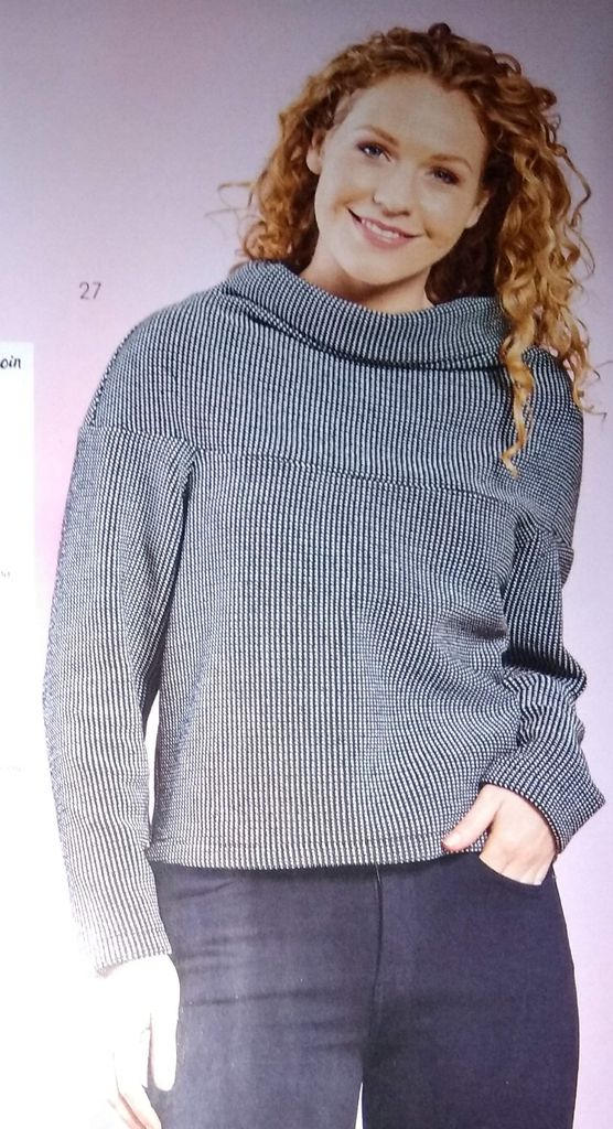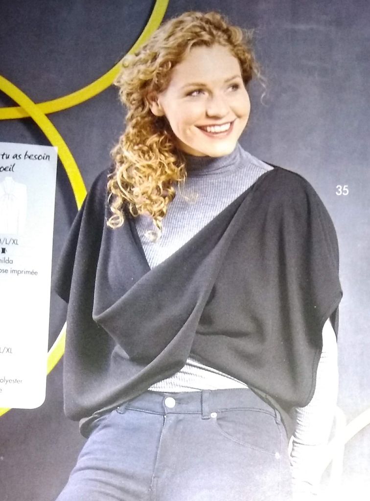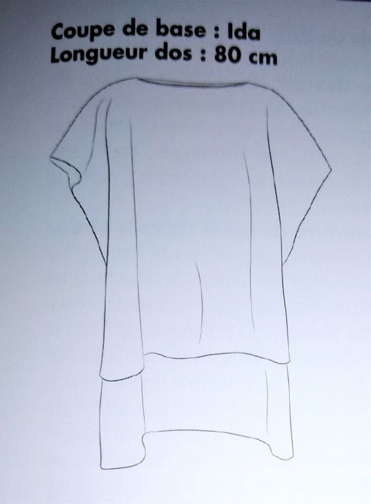 Ce top est idéal à coudre pour les débutantes. Il est assez large ou dit de forme loose. Le dos est plus long que le devant. Il va du S au XL.