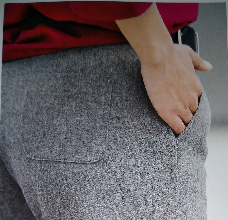 Style Urbain, Esprit mondain, personnellement ce bloc ne m’a pas parlé. Bon après vérification dans la revue, il s’agit d’une tenue chic mais pratique, avec un sac banane revisité.