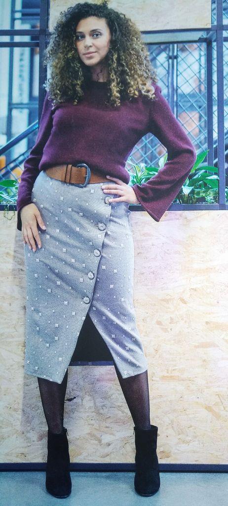 Mon premier coup de cœur est pour une jupe. Je n’étais pas convaincue par le choix du tissu du premier modèle mais les deux suivantes sont juste trop sexy! Il s’agit d’un modèle de forme étroite presque fourreau, l’aisance est donnée grâce au boutonnage asymétrique qui forme une fente dans le bas.