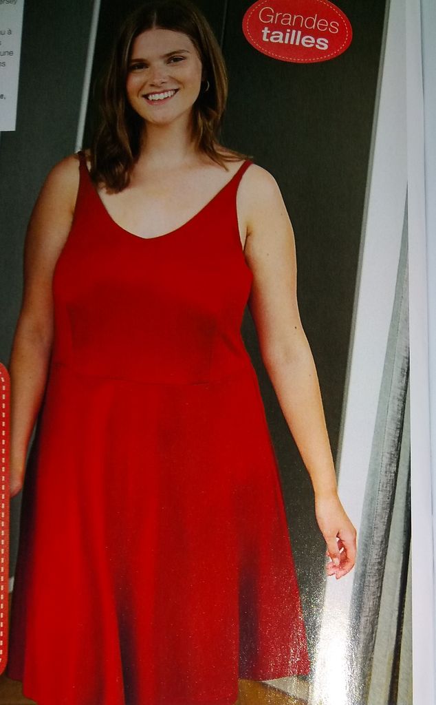 Voici une jolie robe parfaite pour les fêtes et pas uniquement. La jupe est ample et taille haute. Le buste est tout simple mais avec des ouvertures aux épaules que nous retrouvons sur les têtes de manches papillons. Elle va de la taille 46 au 56! C’est une robe en grandes tailles.