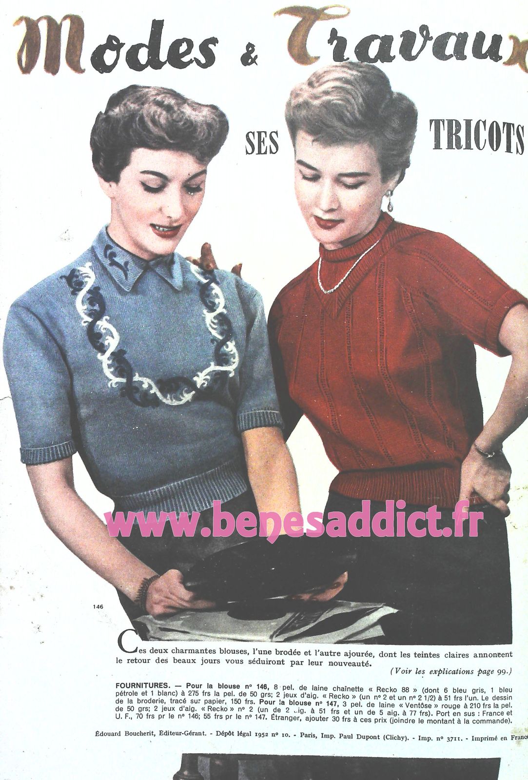 Ils sont tirés comme le montre la couverture de 2 numéros de « Modes et Travaux » de 1952