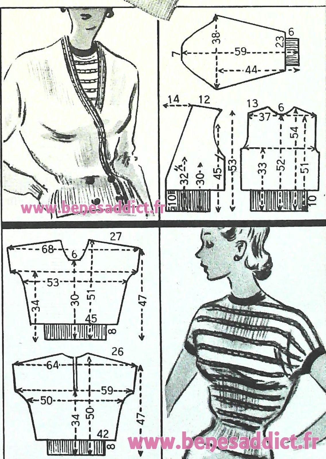 Rétro Addict, aujourd’hui je partage avec vous 47 patrons/modèles en tricot, mais aussi un au crochet d’un superbe top! Ainsi que des tutos couture ou modiste afin de réaliser de superbes chapeaux.