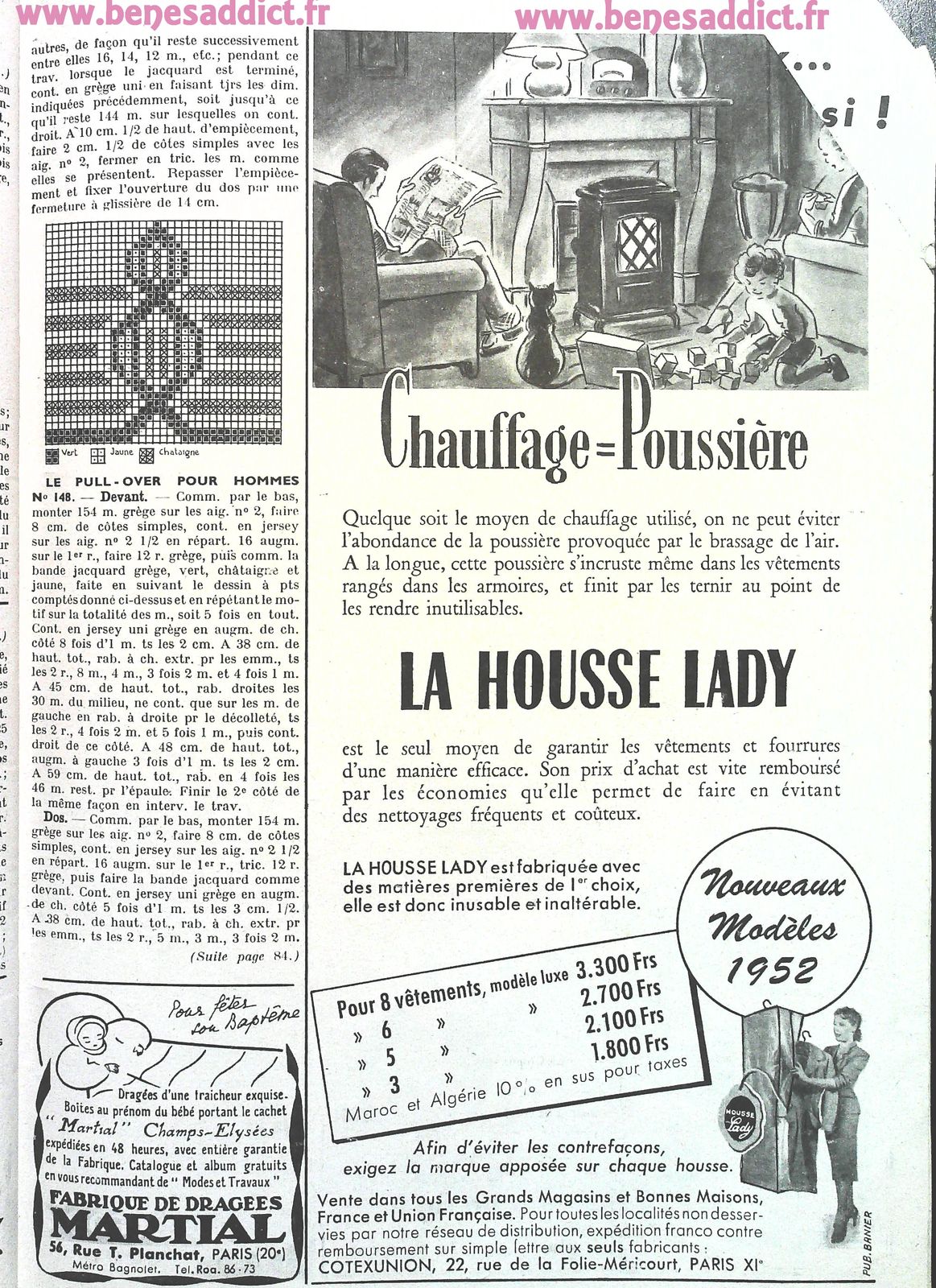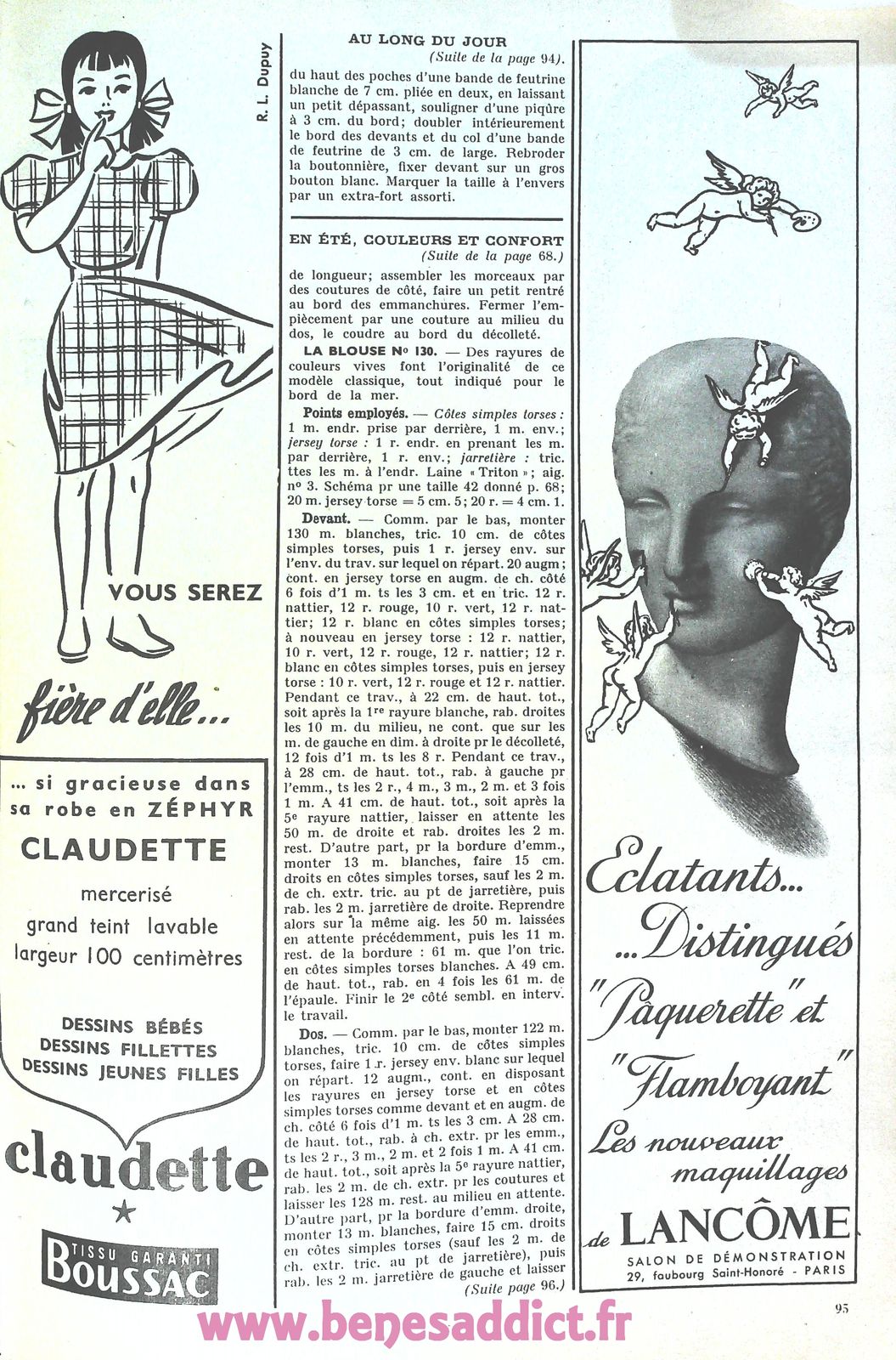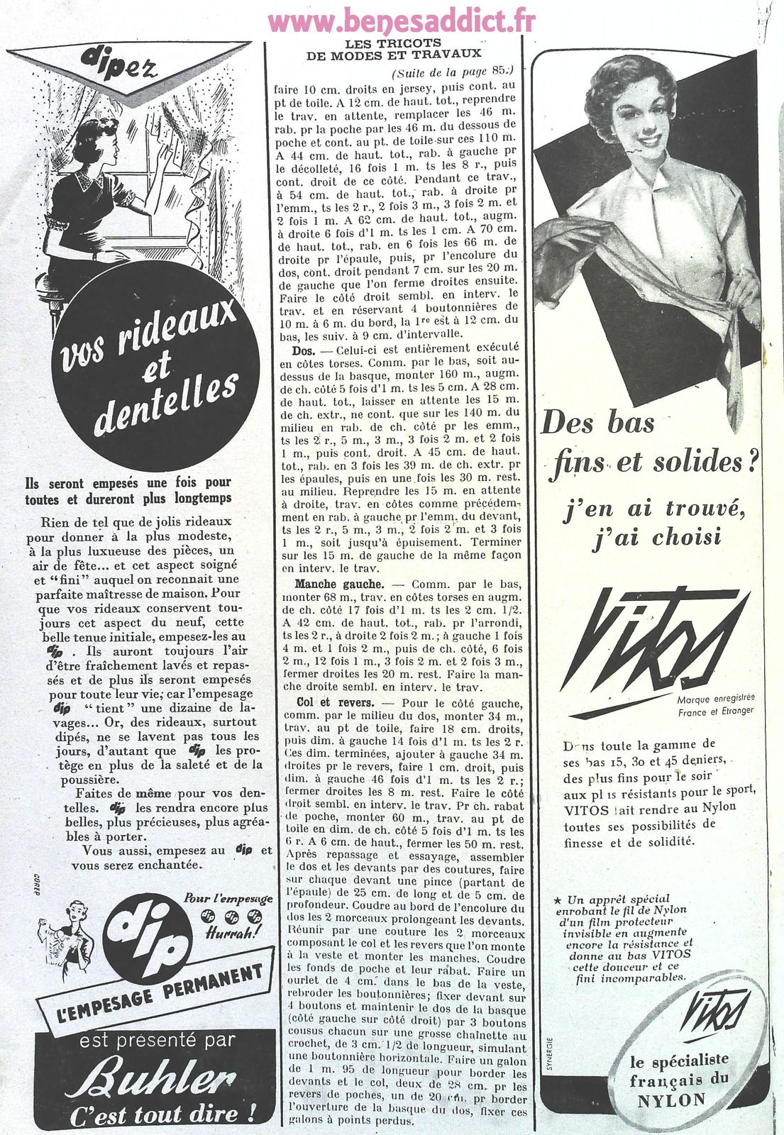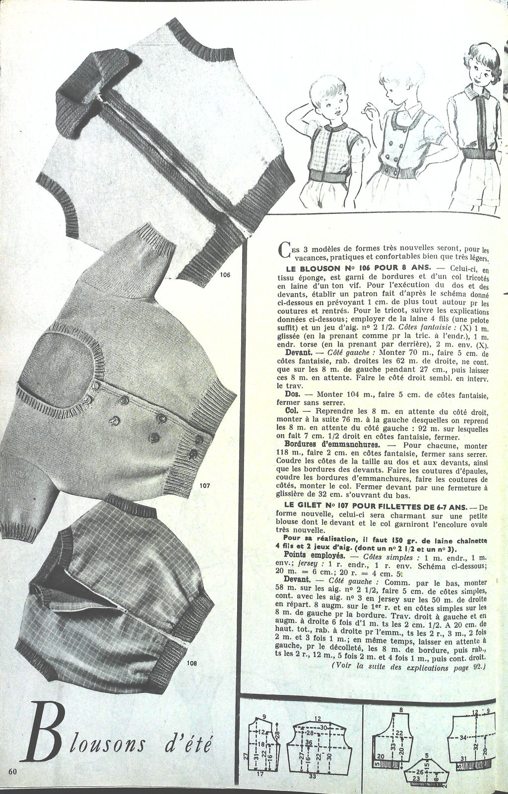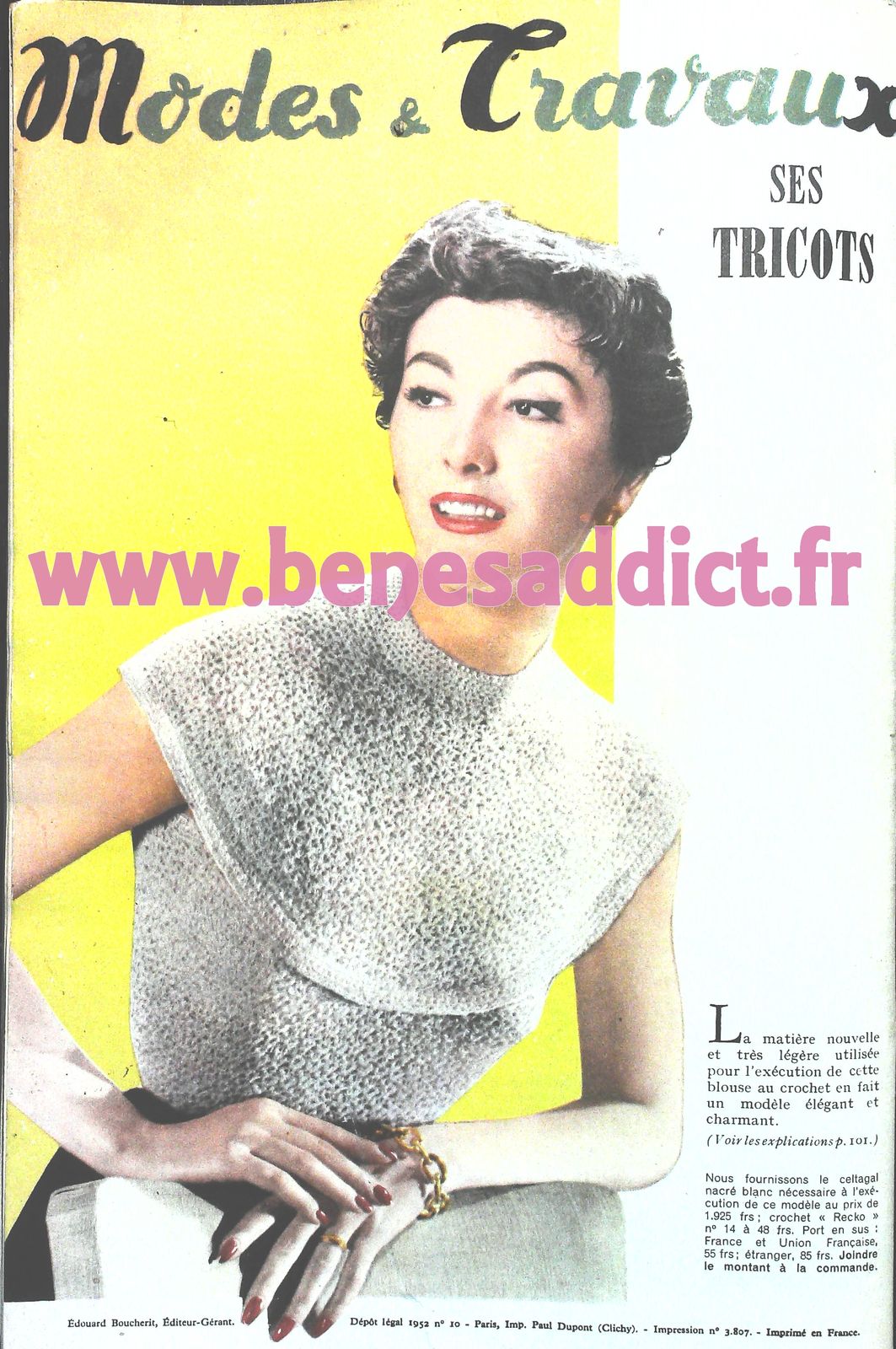 Aujourd’hui comme tous les lundis, je vous offre 39 patrons/modèles datant de 1952 et tous tirés de « Modes et Travaux » !