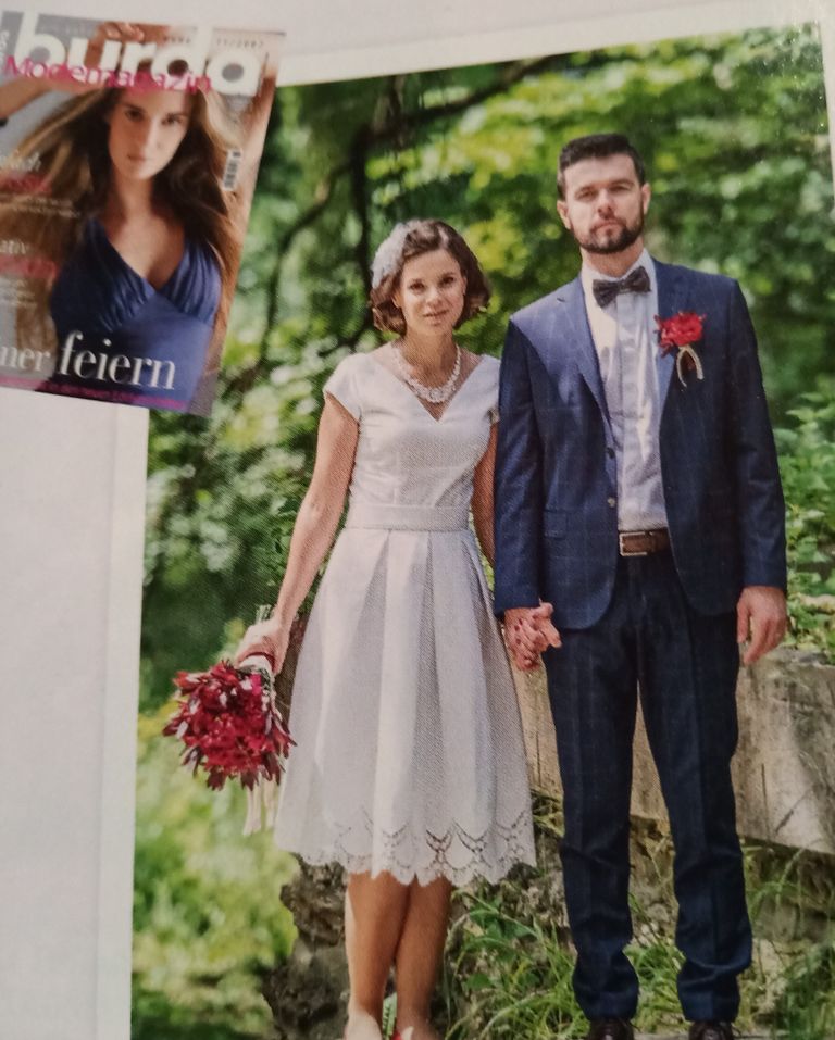 Dans ce numéro Burda met à l’honneur des robes de mariées réalisées par les lectrices au fil des décennies.