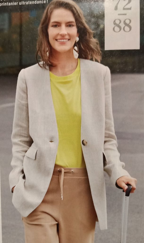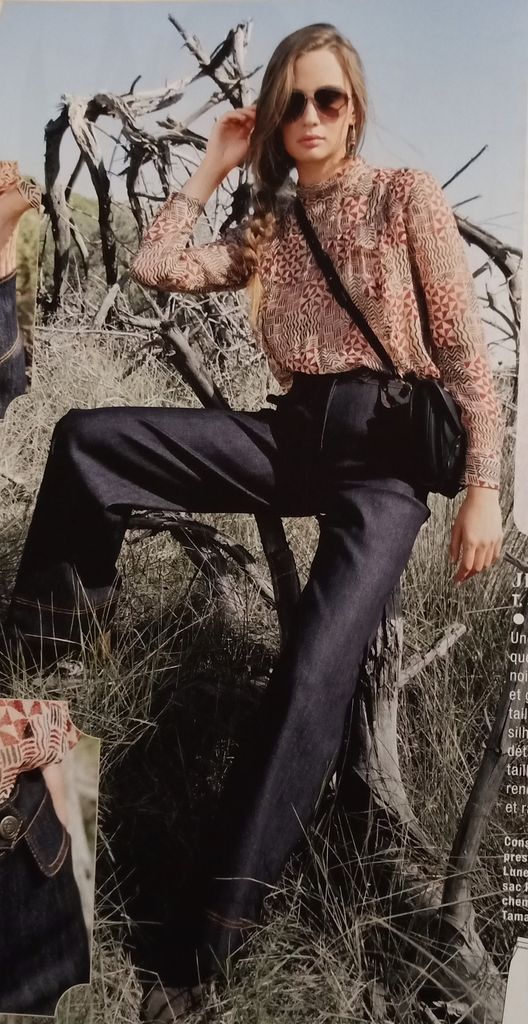Mon dernier coup de cœur est pour ce pantalon mais surtout son originalité. Elle réside dans les petits détails comme les poches plaquées dans le dos, mais aussi les rabats de poches pris dans la ceinture sur le devant ou encore la jolie bride stylée sur le haut de la braguette. La taille est haute et c’est appréciable! Ma fille de 11 ans et demi déteste les pantalon taille basse. Il est inspiré des années 80/90 d’où son ampleur. Dernier point fort, les surpiqures contrastantes un peu partout. Il va de la taille 36 au 44.