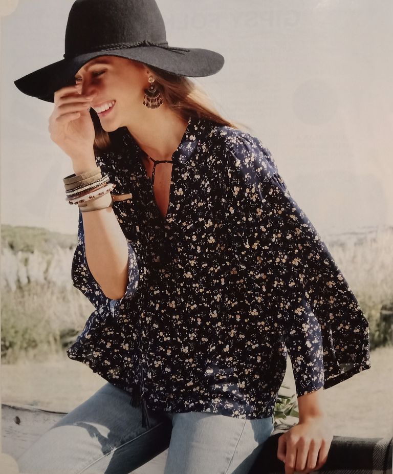 Une ligne est dédiée à la mode folk, et sauvage. Je dirais à mi-chemin entre le country et le bohème. Selon le choix des tissus vous changerez complètement le style, comme avec des petites fleurs pour un look champêtre par exemple.