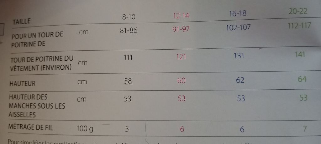 Les différents tableaux de tailles