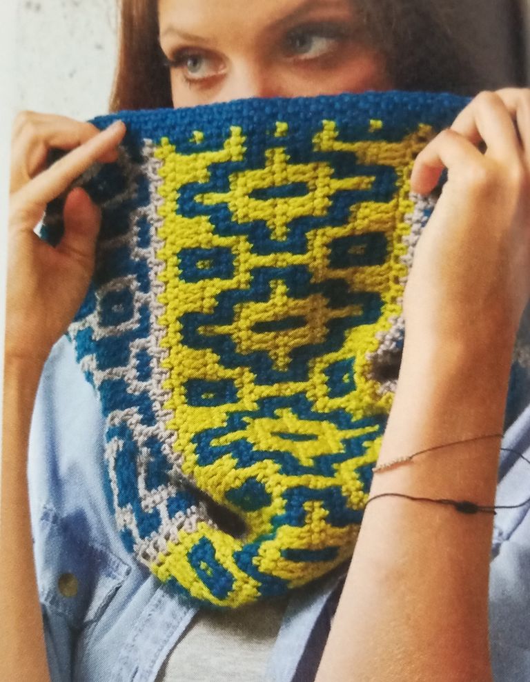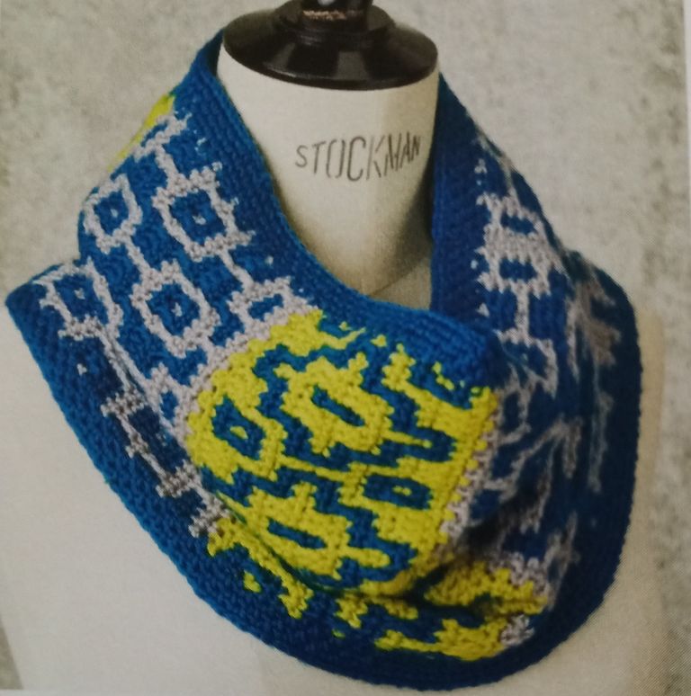 Je suis une grande fan des snoods à simple ou double tour. Celui ci est orné d’une superbe mosaïque.