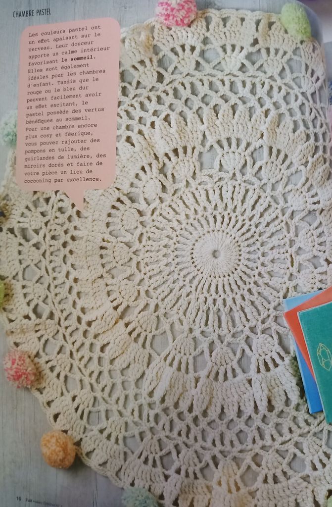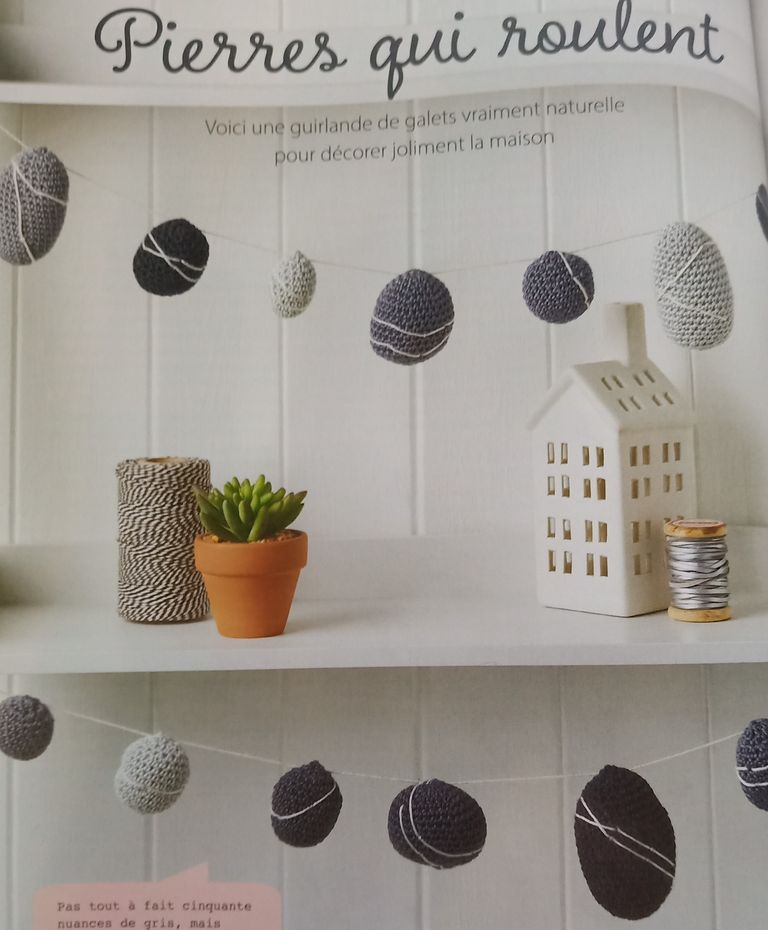 J’aime beaucoup « Fait Main Crochet », je trouve que les idées sont sympathiques et originales, bon je dois admettre que j’ai un peu de mal avec la guirlande de galets. Surtout il y a de magnifiques pièces à réaliser pour tous les niveaux!