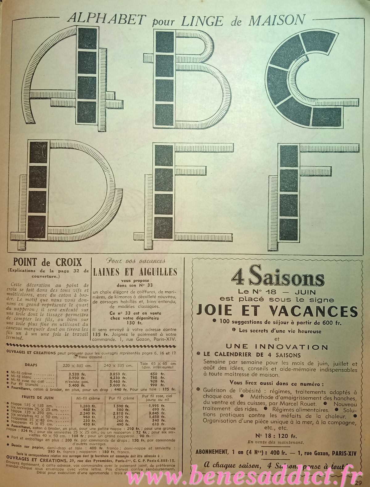 Bouffée d’oxygène avec + 80 patrons/modèles GRATUITS 50’s couture, tricot, crochet, broderie, déco, recettes…