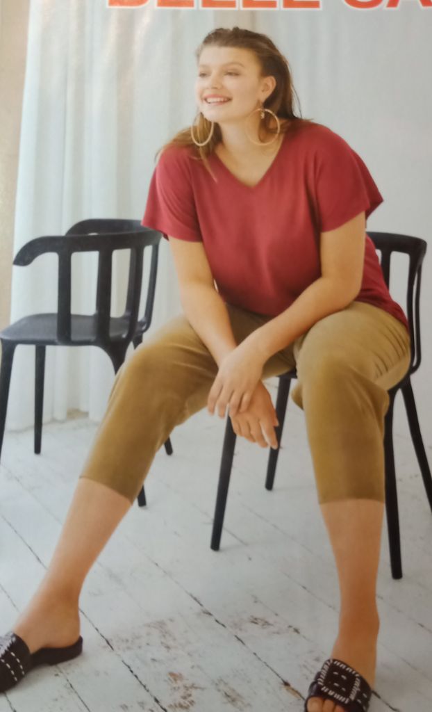 La ligne grande taille, est une ligne printanière, qui contient des basiques réalisés dans des matières et coloris naturels. Elle va jusqu’au 52.