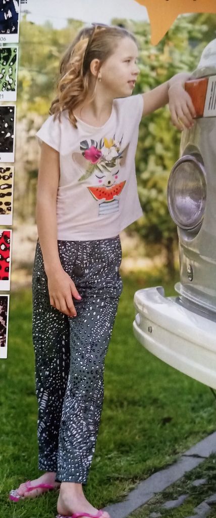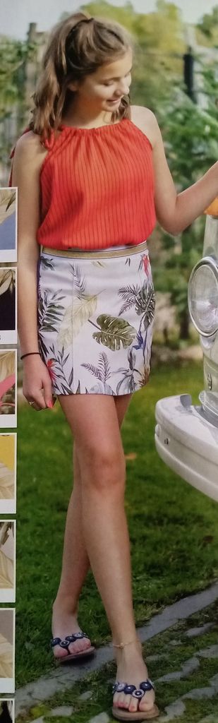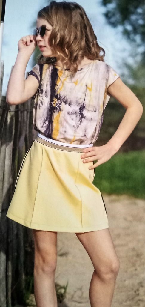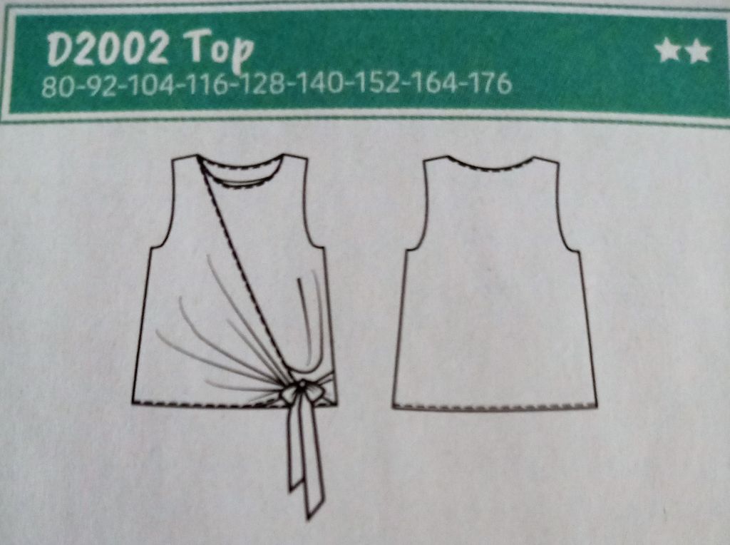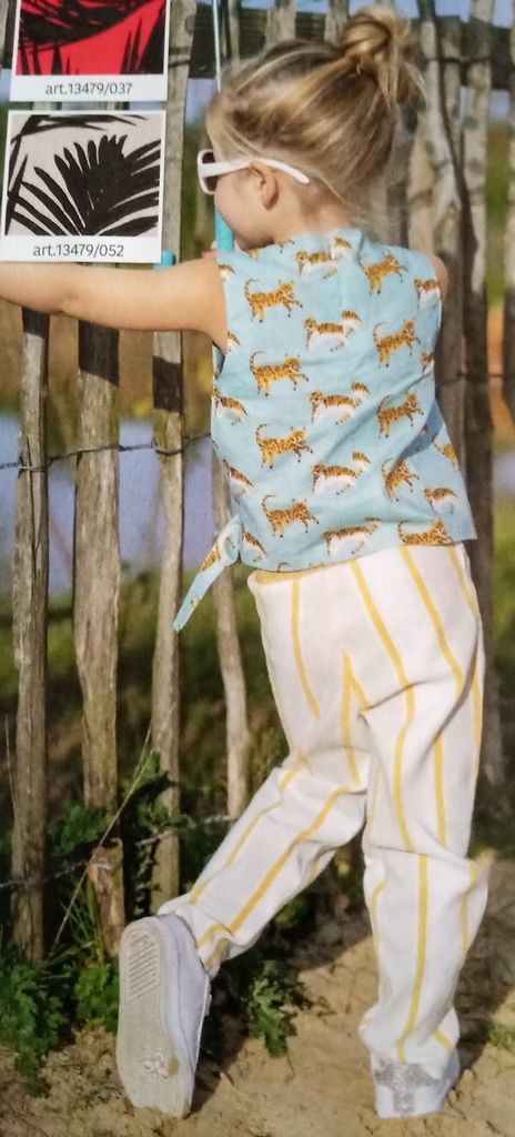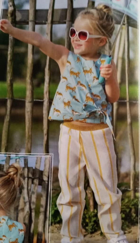 Mon dernier coup de cœur est pour le top, vous le voyez ici en version enfant mais comme il va jusqu’au 176 les ados apprécieront ce modèle. Il s’agit d’un top sans manches avec une encolure ronde. Un pan du devant se noue sur le côté pour donner un léger effet de drapé.