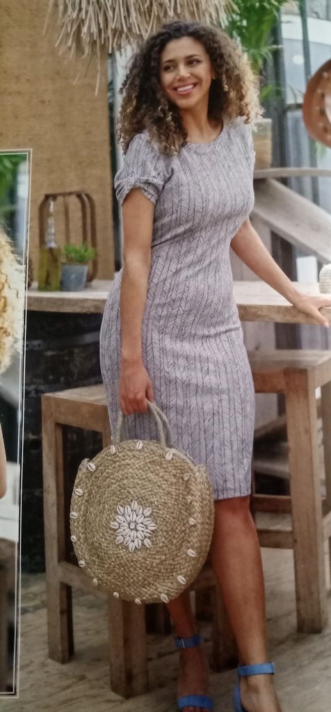 Mon premier coup de cœur est pour cette robe moulante étonnante de simplicité. Elle est réalisée en jersey avec une encolure ronde plutôt sage. Le petit détail qui fait la différence se trouve sur les manches courtes, regardez cet effet de nœud qui sublime le haut du bras!