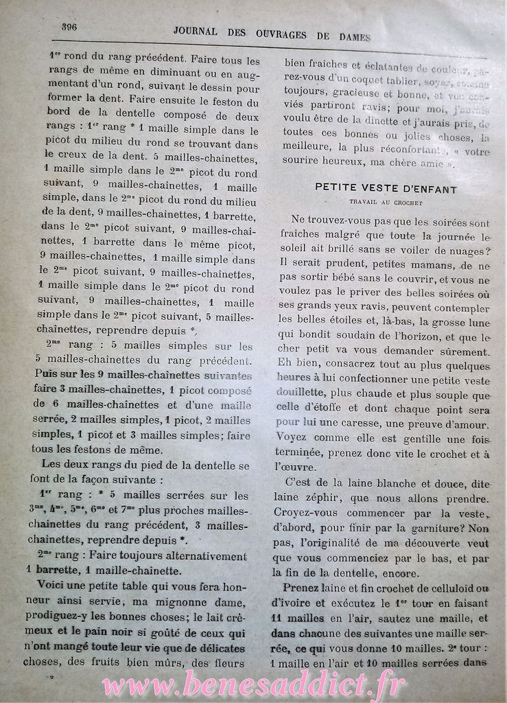 « Journal Des Ouvrages de Dames 1896 » Patrons modèles GRATUITS couture, crochet, tricot, broderie…