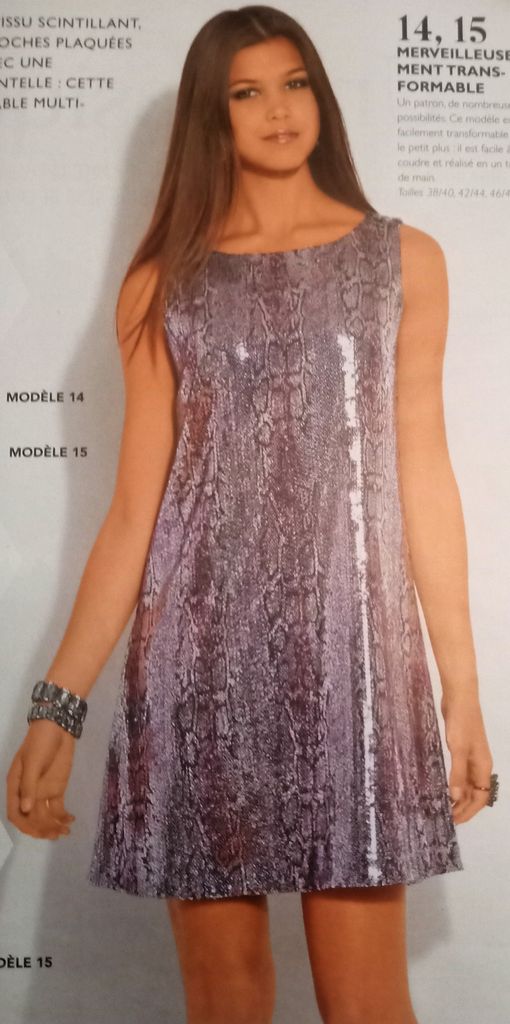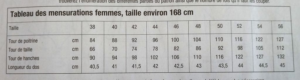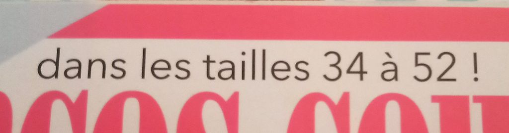 Voila c’est aussi une des raisons pour laquelle j’ai acheté cette revue, l’amplitude de tailles annoncées, elles vont du 34 au 52. Bon, tous les modèles ne sont malheureusement pas dans ce panel. Il serait plus judicieux d’indiquer, qu’il y a aussi des modèles qui vont jusqu’au 52.