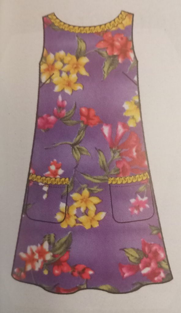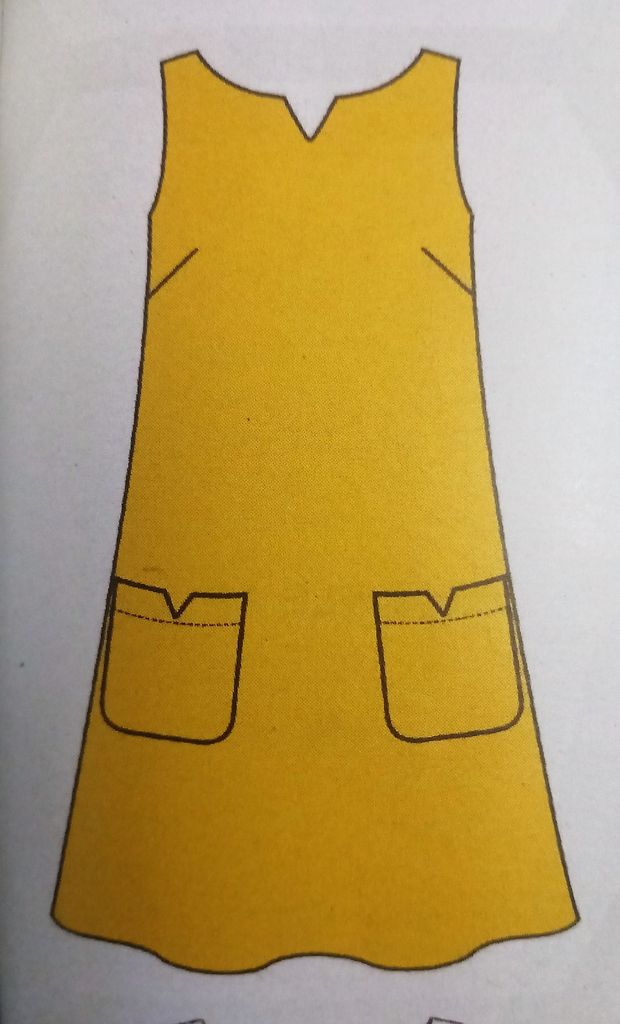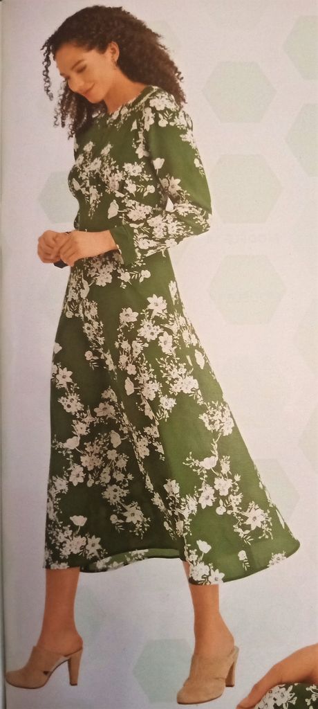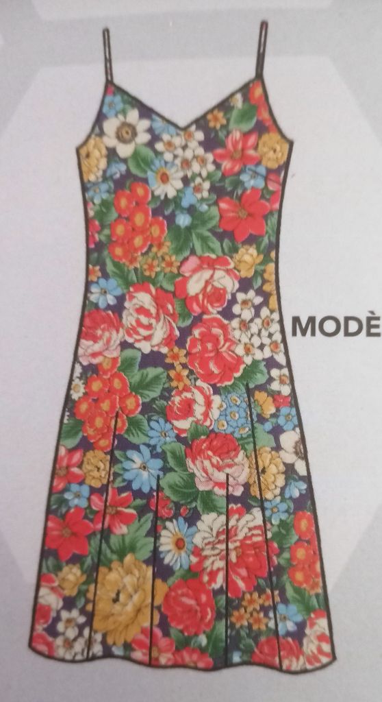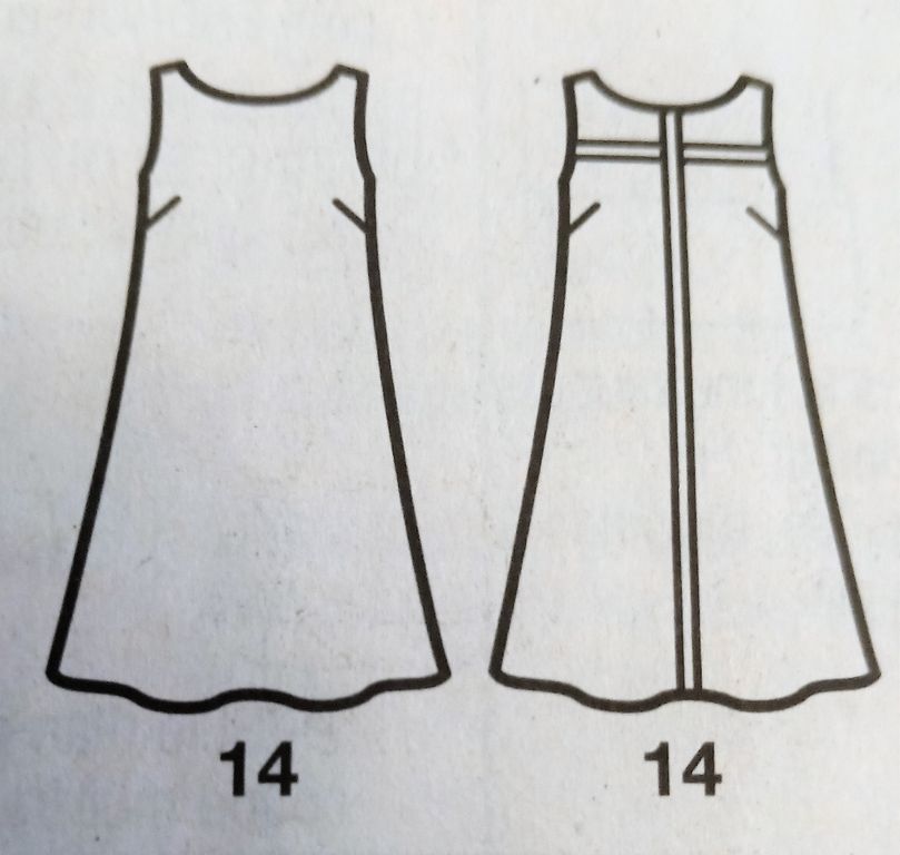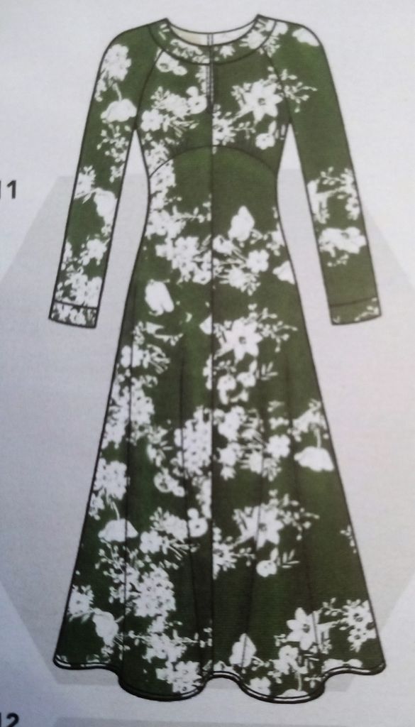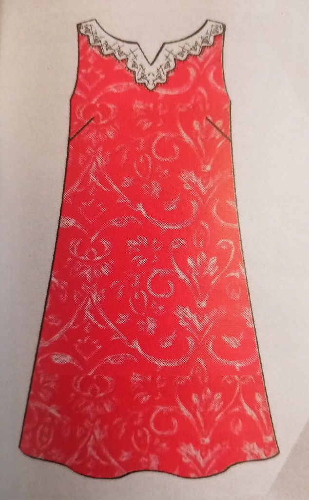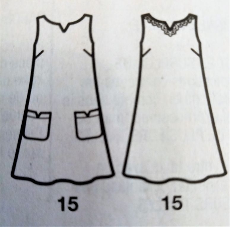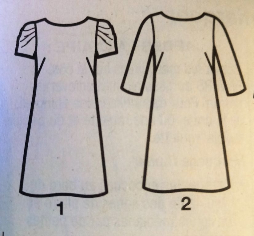 Encore une robe, ici aussi en deux versions manches courtes ou longues, qui me fait penser aux robes des années 60. Elle est de forme trapèze avec une encolure bateau et un col officier loin du cou. Elle va de la taille 38 au 48.