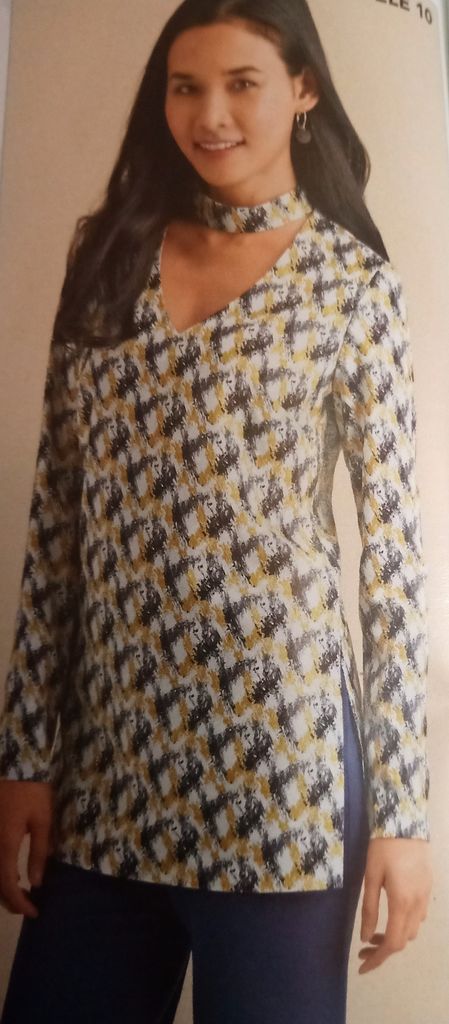 Un basique transformé, une tunique ou une robe selon la longueur que vous choisissez. Elle est ajustée sur le buste avec des pinces de poitrine. Le détails qui attire l’attention est son encolure en V garnie d’un petit col montant. Tout comme pour la longueur de vêtement vous avez le choix pour les manches. Les tailles vont du 38 au 48