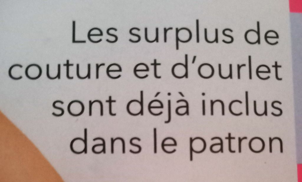 Cet encart je l’adore, et je le déteste! Pourquoi? J’aime que l’info sur les valeurs de couture soit facile à trouver, et ne pas perdre un temps fou pour mettre la main dessus dans la revue. Je déteste que les valeurs de couture sont incluses car j’ai mes petites habitudes! Depuis des années je mets toujours les mêmes, et ça ne correspond pas toujours à ce que les revues ou patrons proposent.