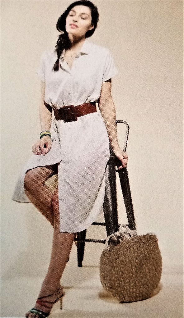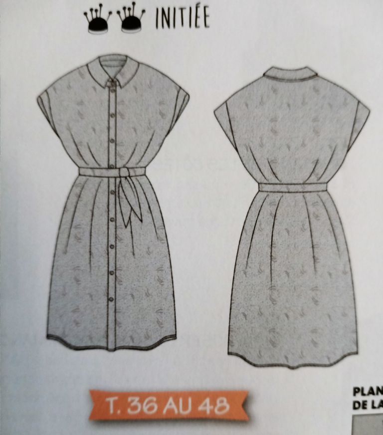 Une deuxième robe, je lui trouve un air rétro, elle me fait penser par sa simplicité aux modèles des années 50, l’ampleur de la jupe en moins. Elle est boutonnée sur toute la hauteur du devant. l’encolure est garnie d’un petit col. Les petits manches sont ornées d’un petit revers. La jupe et le haut sont de forme droite avec un peu d’aisance pour le côté blousant à la taille. Une ceinture vient l’accentuer encore plus.