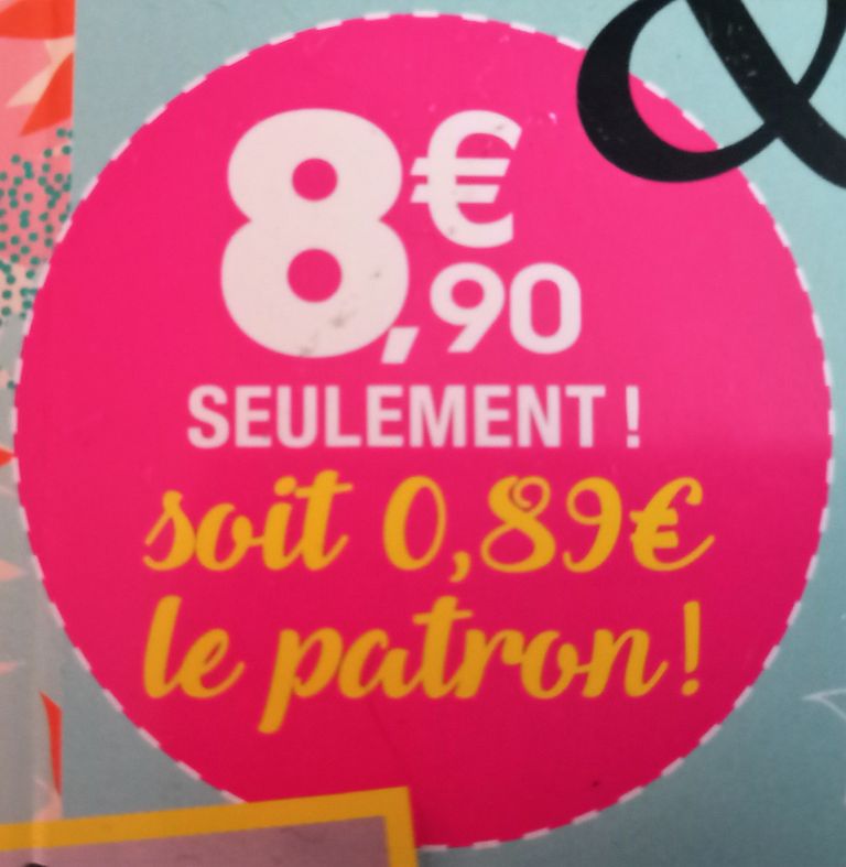 Le prix de cette revue est indiqué lisiblement sur la couverture. Il y a quelques magazines ou le prix est au dos de la couverture, je déteste ça, généralement c’est que le prix est élevé! Ici pour des patrons de grande qualité le prix est abordable!