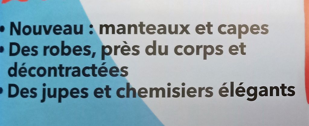 Faites attention, malheureusement tous les patrons ne vont pas tous jusqu’au 56, loin de là. C’est un argument de vente certes, mais trompeur. Je dois avouer que je l’ai acheté sans le voir ce petit bandeau. Et même pas feuilleté non plus avant la prise des photos de cette revue de presse.