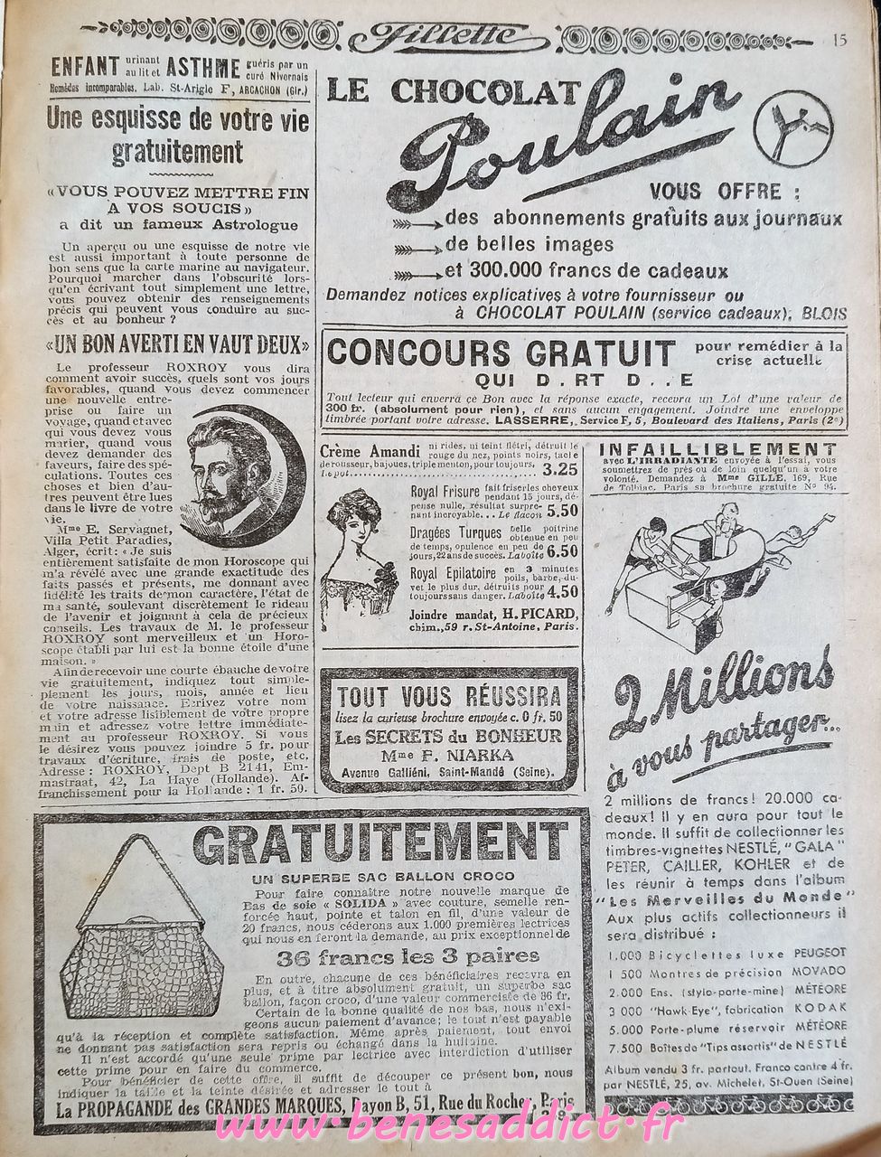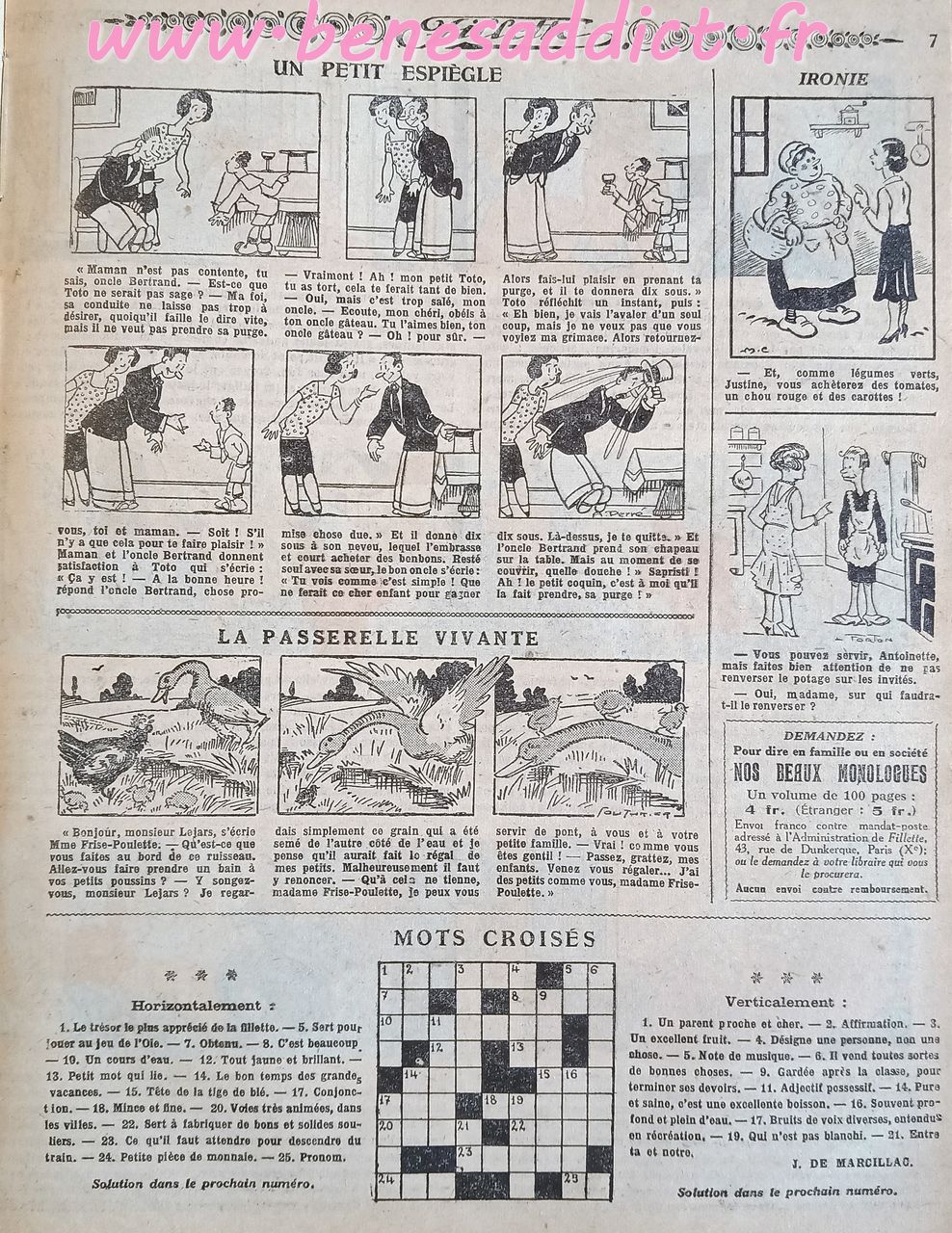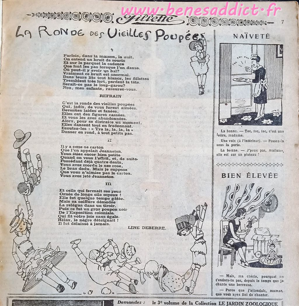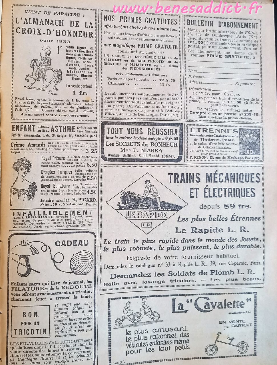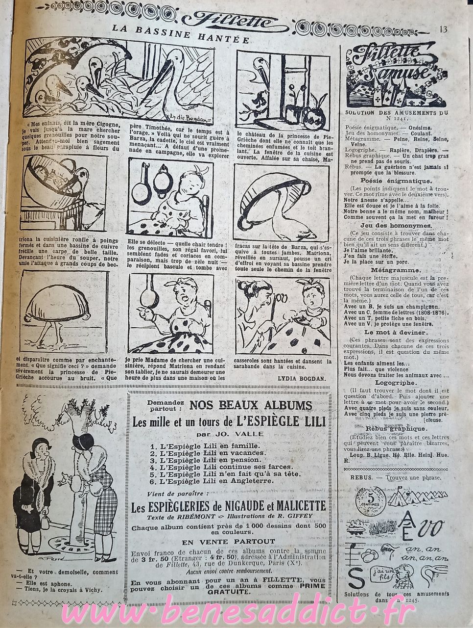 Voici donc un peu plus d’une centaine de pages sur tous les thèmes. Ils viennent d’une recueil annuel de 1932 « Fillette ». Je crois que c’est le seul de ma collection, autant les « Lisette » j’en ai plusieurs.