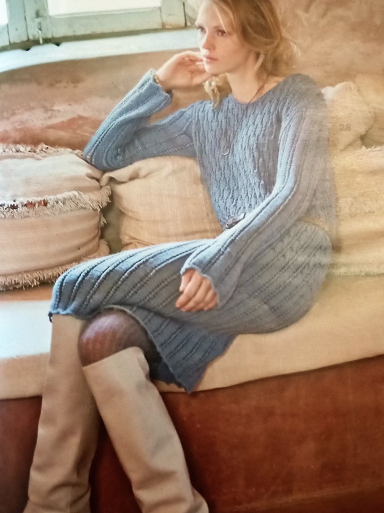 Cette robe, (oui celles qui me connaissent savent qu’il y a toujours une robe dans mon top) et pour moi le summum du confort et du cocooning. Elle est superbe avec ses différents et nombreux jeux de points ajourés. La petite ceinture en cuir qui vient marquer la taille sublime la robe. Elle est en tailles 38/40 – 44/46