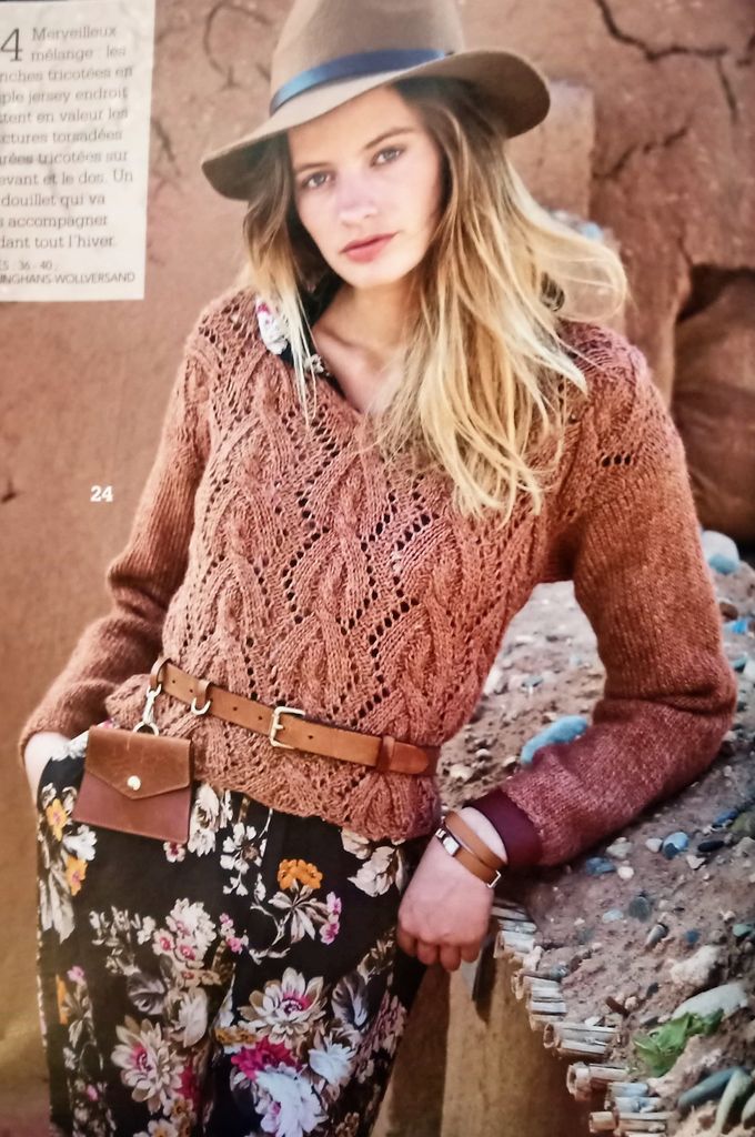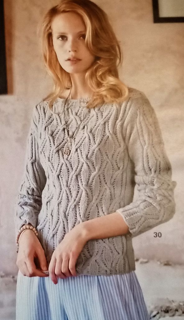24 – Pull en motif torsadé ajouré tailles 36 – 40