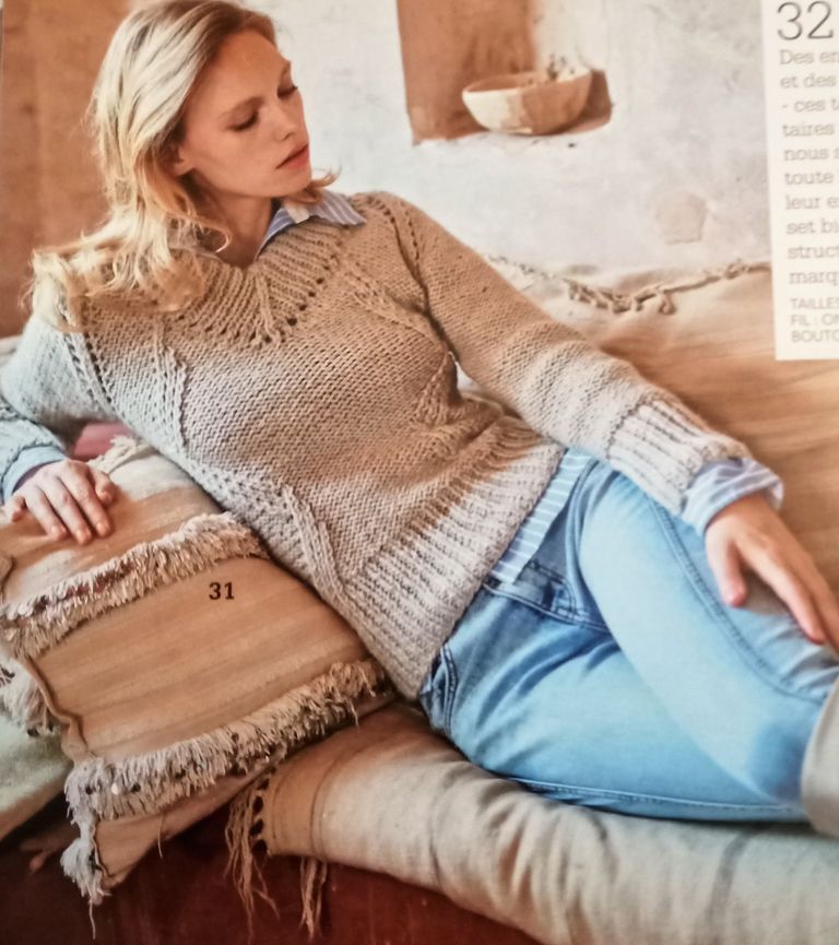 27 – Pull en motif perlé et torsadé tailles 36/38 – 40/42 – 44