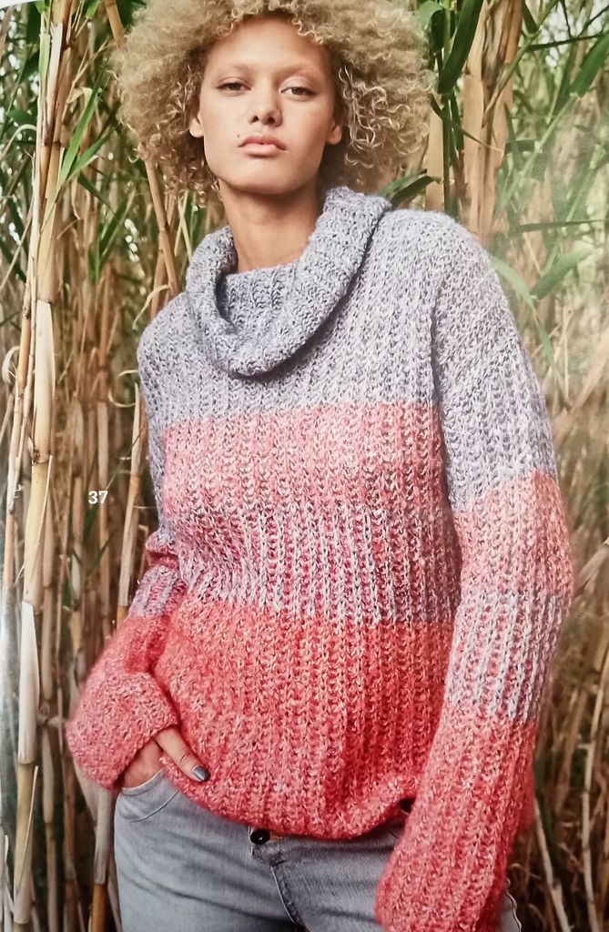 La couleur corail , fait parti de mon panel de coloris préférés! Mais il est vrai que je n’ai jamais essayé de le marier avec du gris. Bon ici c’est bien entendu du tricot avec les côtes anglaises en force. Le contraste est intéressant!