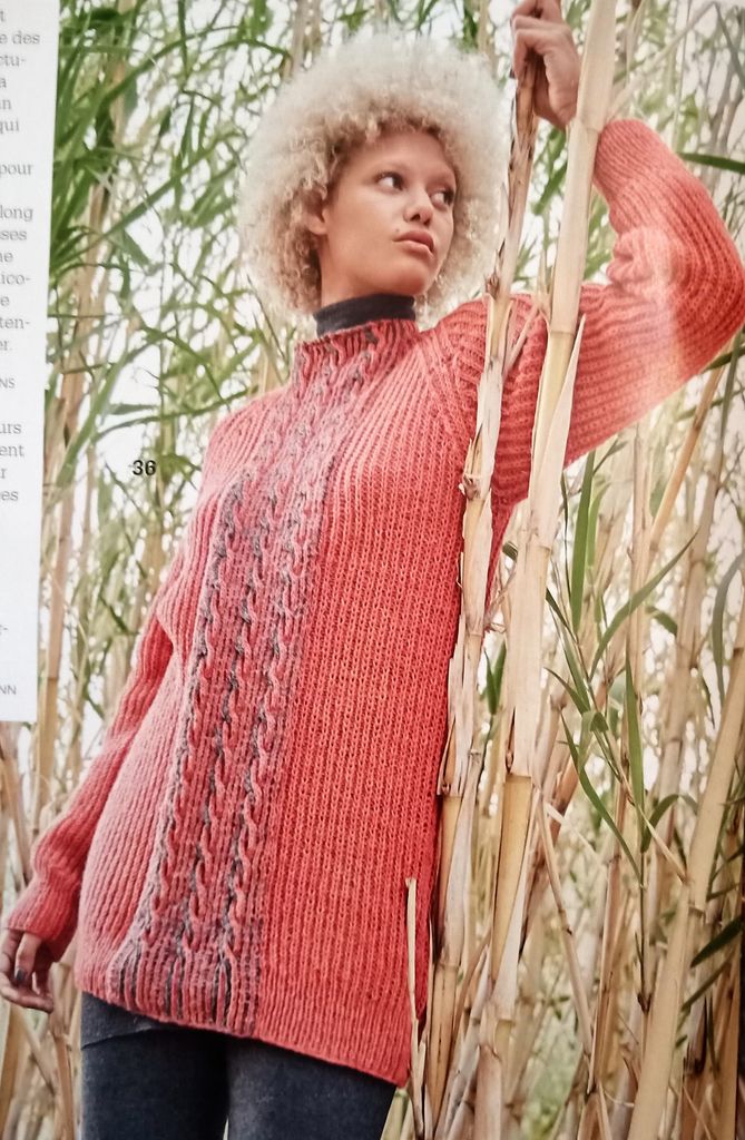 36 – Pull en fausse côtes anglaises avec un empiècement en motif torsadé tailles40/42 – 44/46 – 48/5