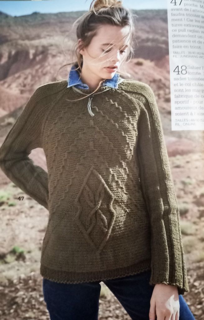 47 – Pull raglan avec un motif en diagonale tailles 38/40 – 42/44 – 46/48