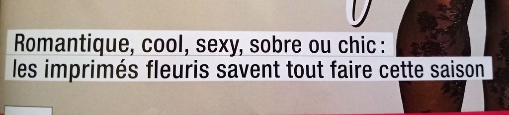 Comme vous pouvez le voir, les imprimés fleuris sont à la fête cette saison, c’est aussi un moyen de prolonger l’été. C’est vrai que les fleurs se prêtent à tout les modèles, de la veste à la robe au pantalon.