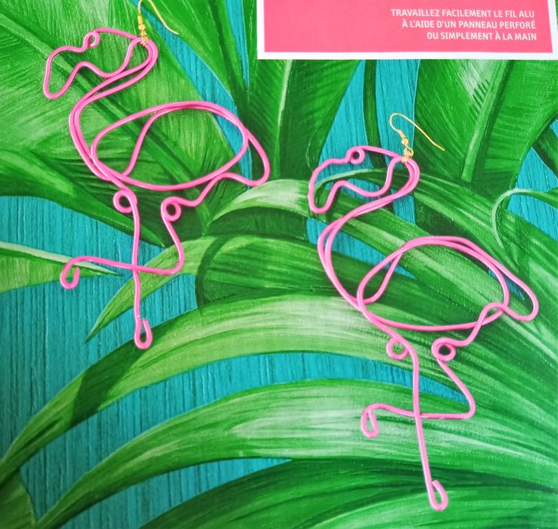 2 – Boucles d’oreilles en fil d’aluminium flamants roses
