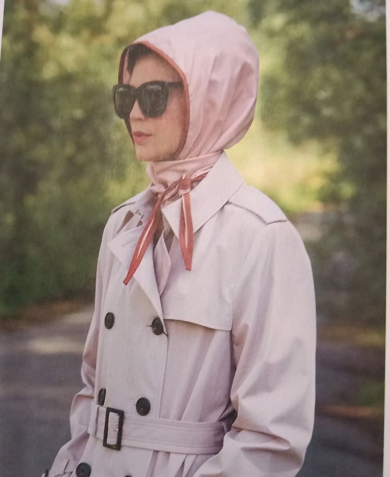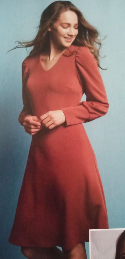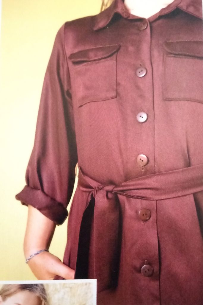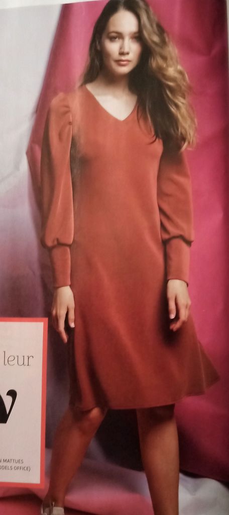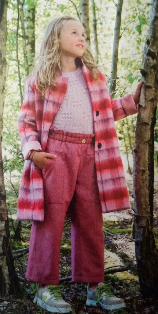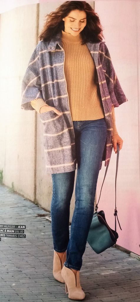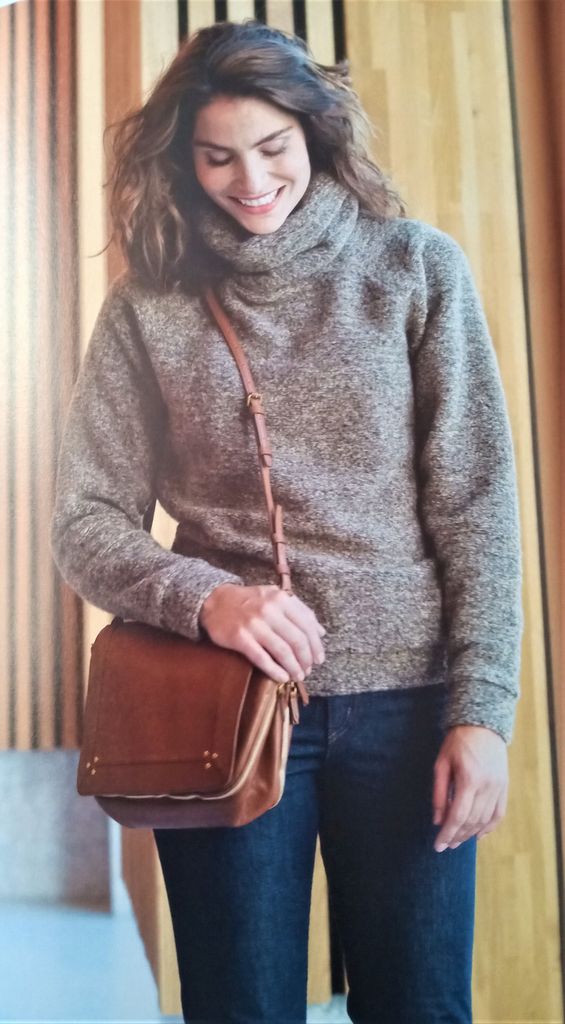 J’ai craqué pour cette cape cosy, d’ailleurs ce n’est pas une cape, elle a des manches courtes. Elle possède un col montant et se ferme à l’aide d’une fermeture à glissière. Deux grandes poches plaquées viennent garnir le devant. Je la verrai bien avec des manches longues rapporté en jersey tubulaire ou lainage contrastant. Avec cette pièce pas de soucis de pull qui coince aux entournures. Elle va de la taille 34 au 56.