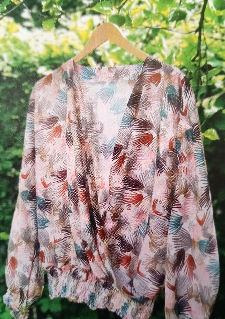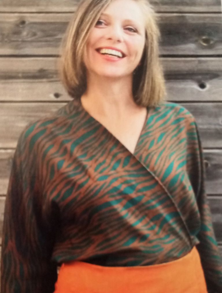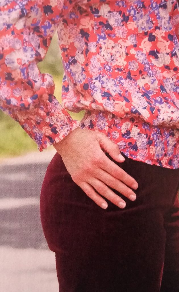 J’aime beaucoup cette blouse cache-coeur croisé, celui ci est maintenu par la bande de smocks rapportée dans le bas. Les bas de manches eux sont réalisés à même. La blouse est simple avec ses manches kimono ou chauve souris selon certains. Elle va de la taille 34 au 56.