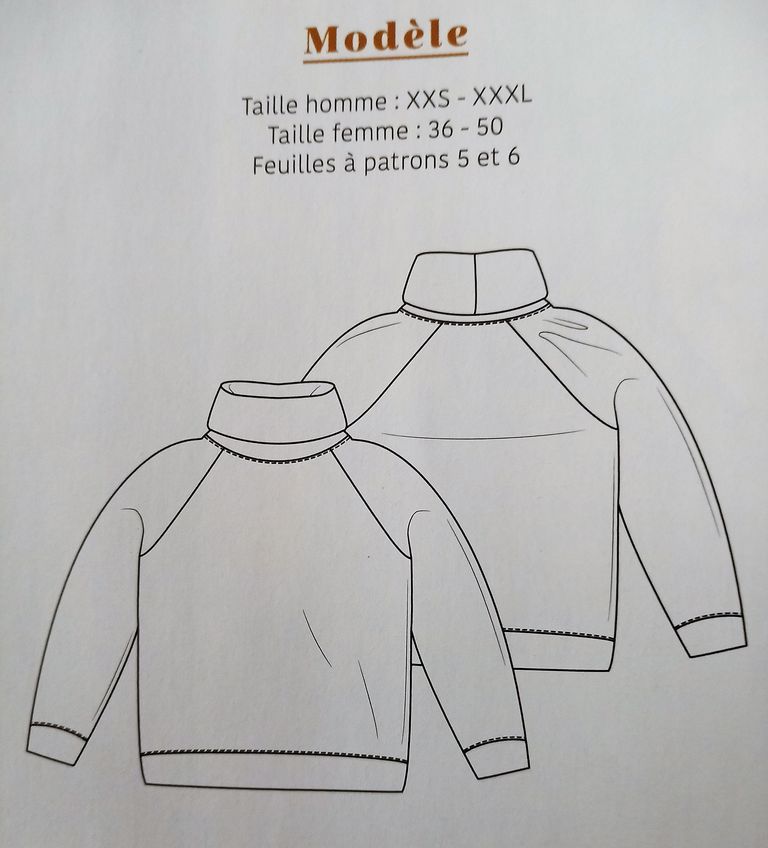 Mon premier coup de cœur est pour ce sweat mixte. Il possède un haut col roulé. Des manches raglans longues bien entendu. Les bas de manches et d’ourlet sont remplacés par une bande dans le même tissu. Il est dans les tailles XXS au XXL pour homme et du 36 au 50 pour les femmes.
