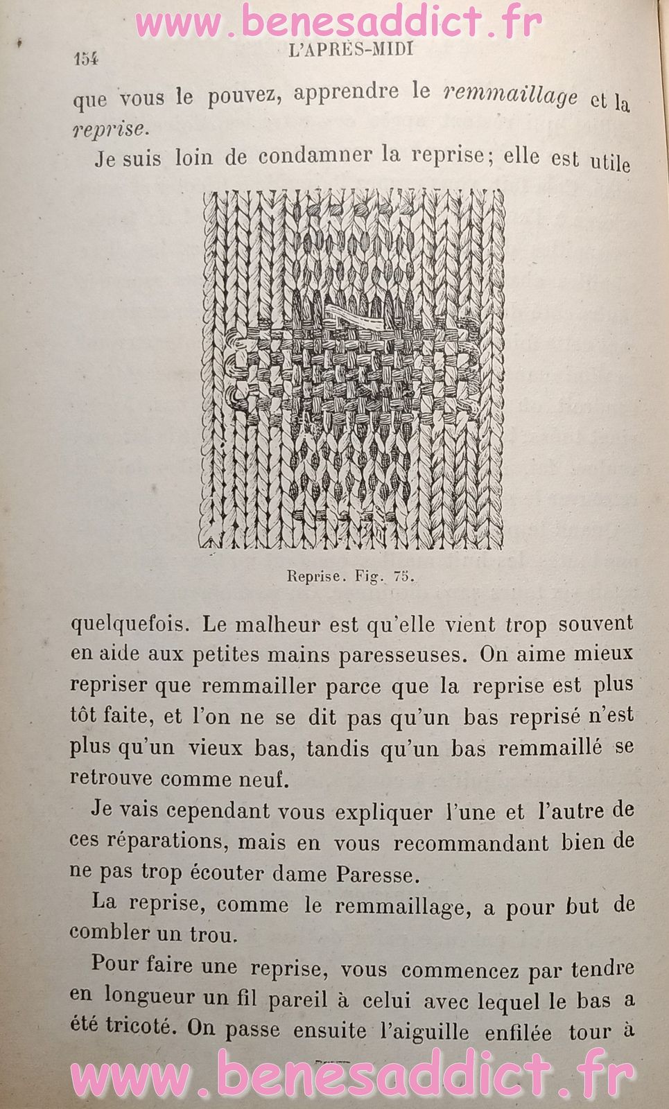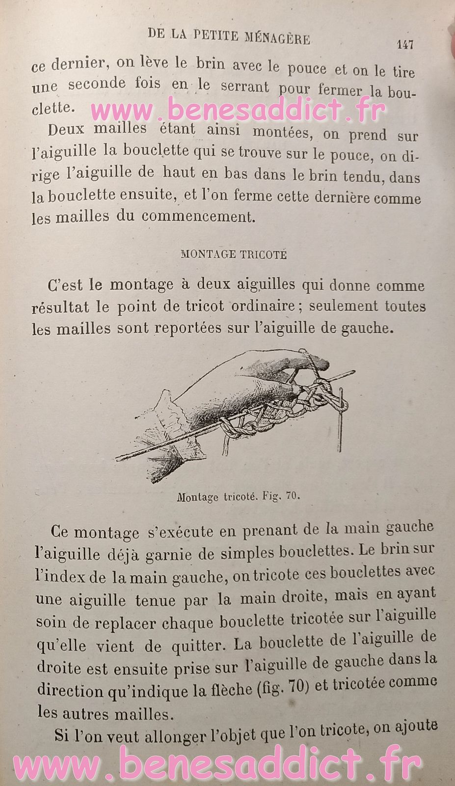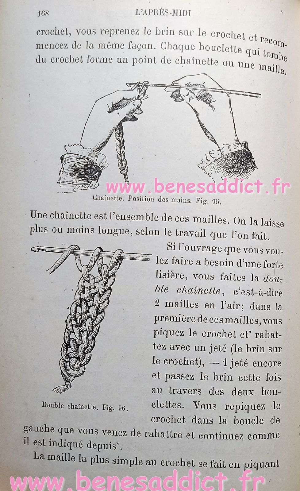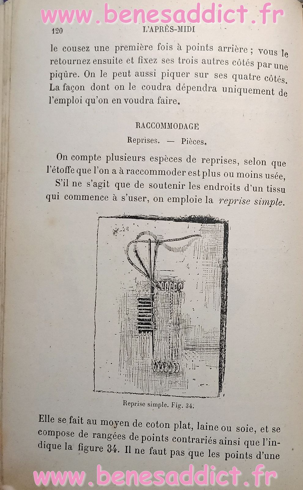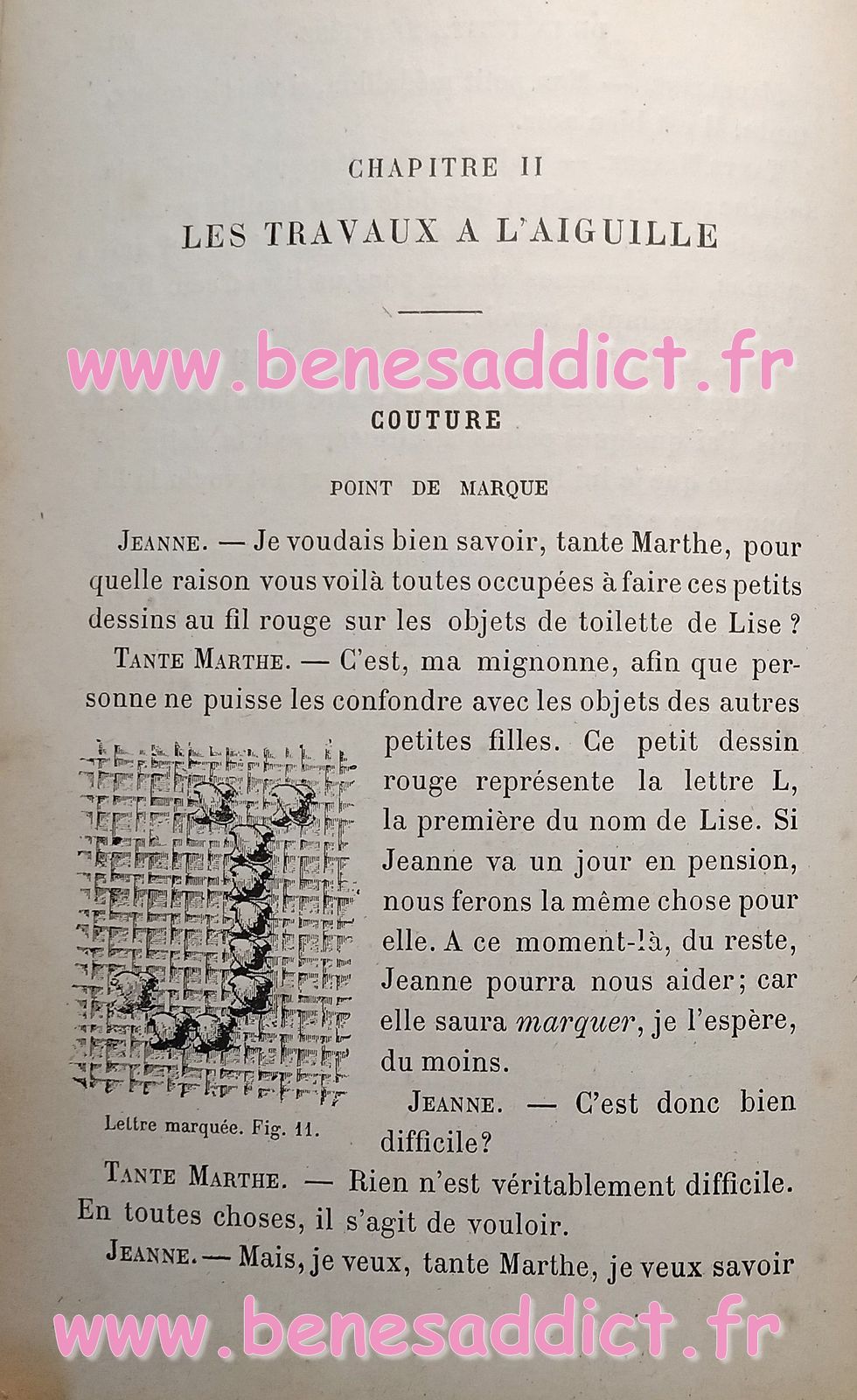 Dans ce chapitre, les coutures à la main, ainsi que les points de broderie, tout comme le raccommodage, mais aussi le reprisage font parti de l’enseignement des jeunes filles. Mais encore comment réaliser une chemise pour homme, et une chemise de nuit pour femme…. Le tricot, tout comme le crochet ont aussi la part belle au travers de ces multiples pages.