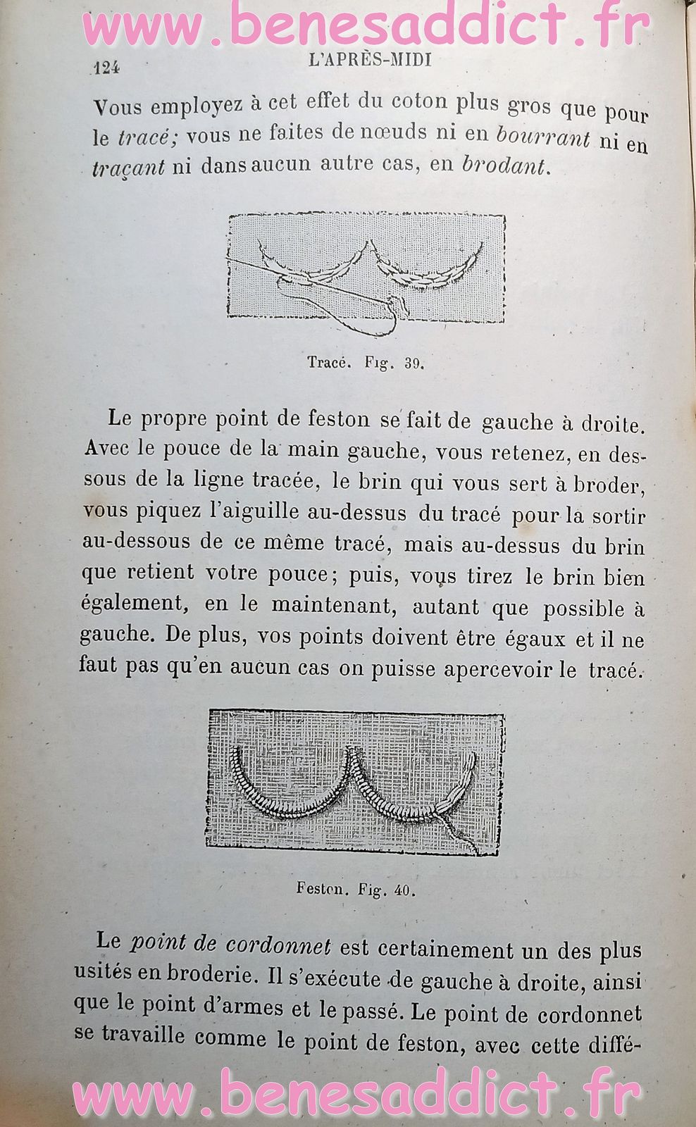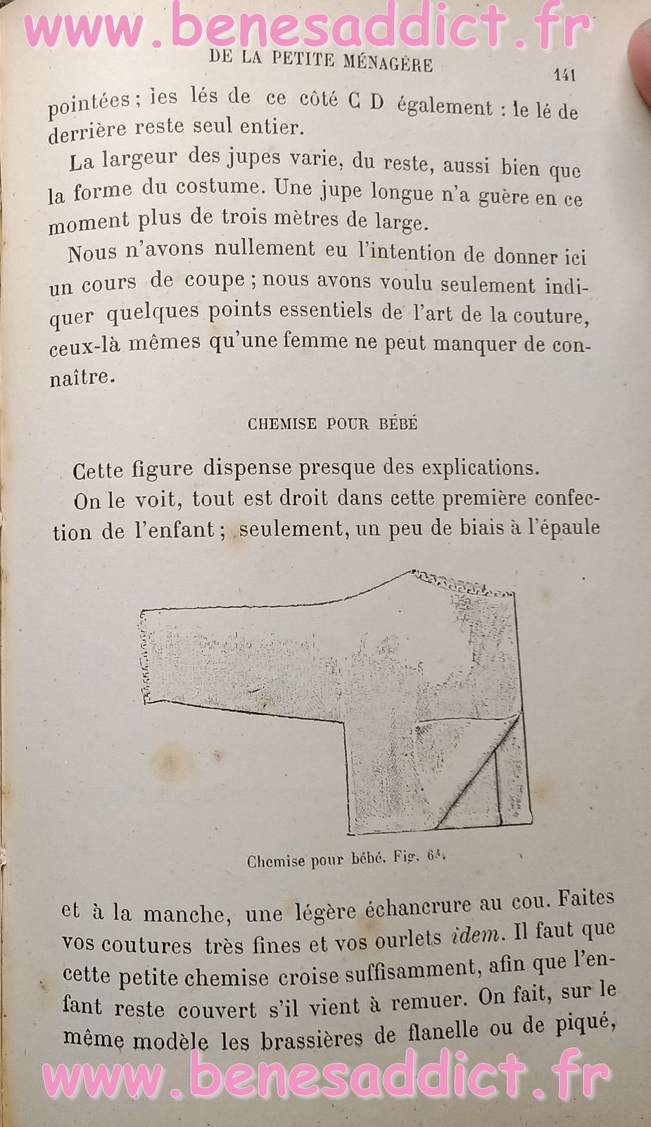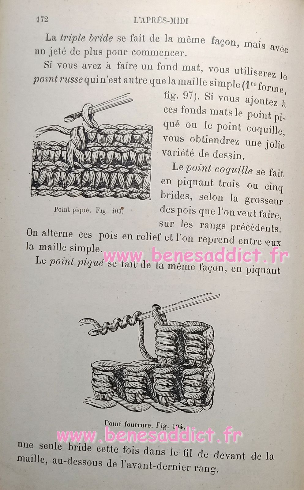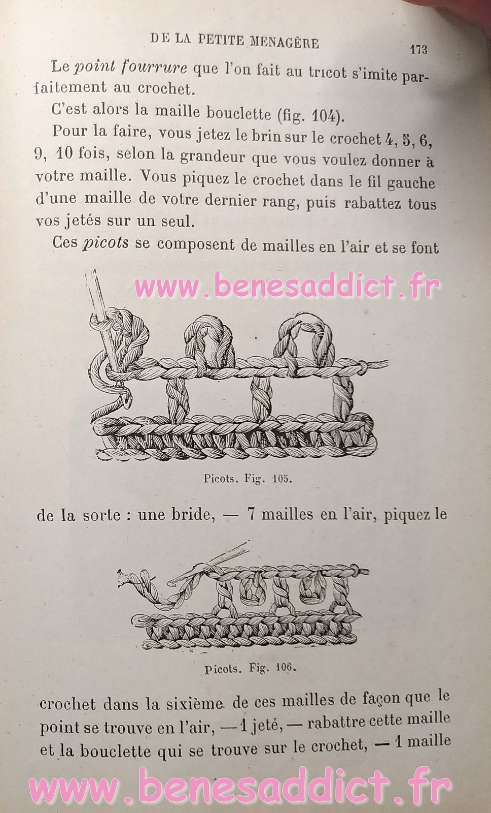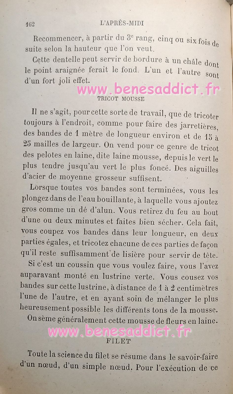 Dans ce chapitre, les coutures à la main, ainsi que les points de broderie, tout comme le raccommodage, mais aussi le reprisage font parti de l’enseignement des jeunes filles. Mais encore comment réaliser une chemise pour homme, et une chemise de nuit pour femme…. Le tricot, tout comme le crochet ont aussi la part belle au travers de ces multiples pages.