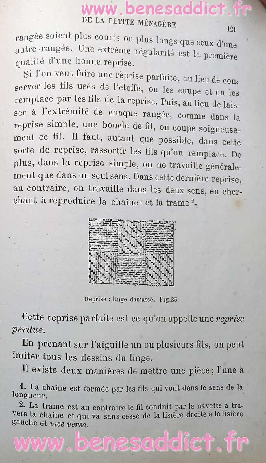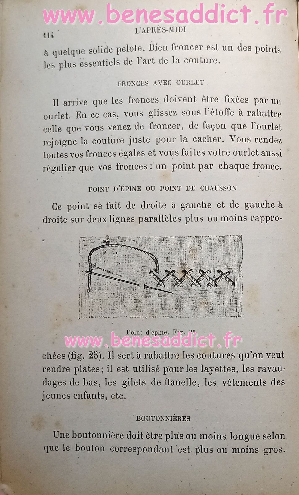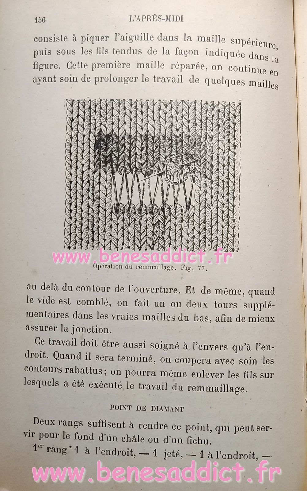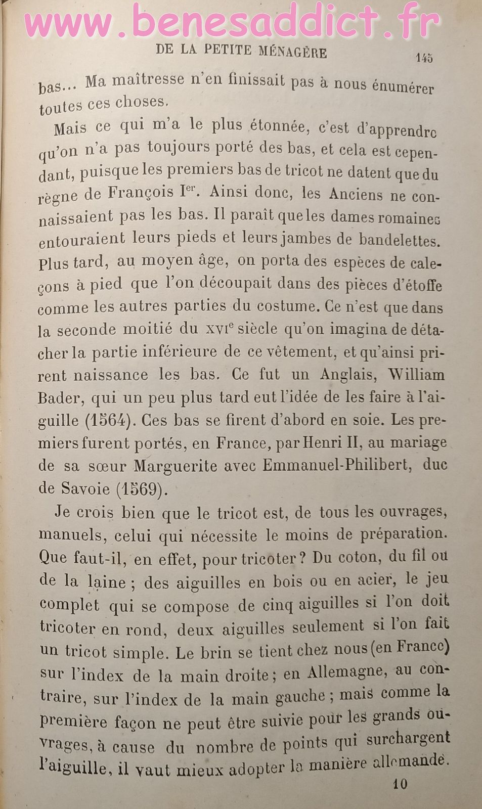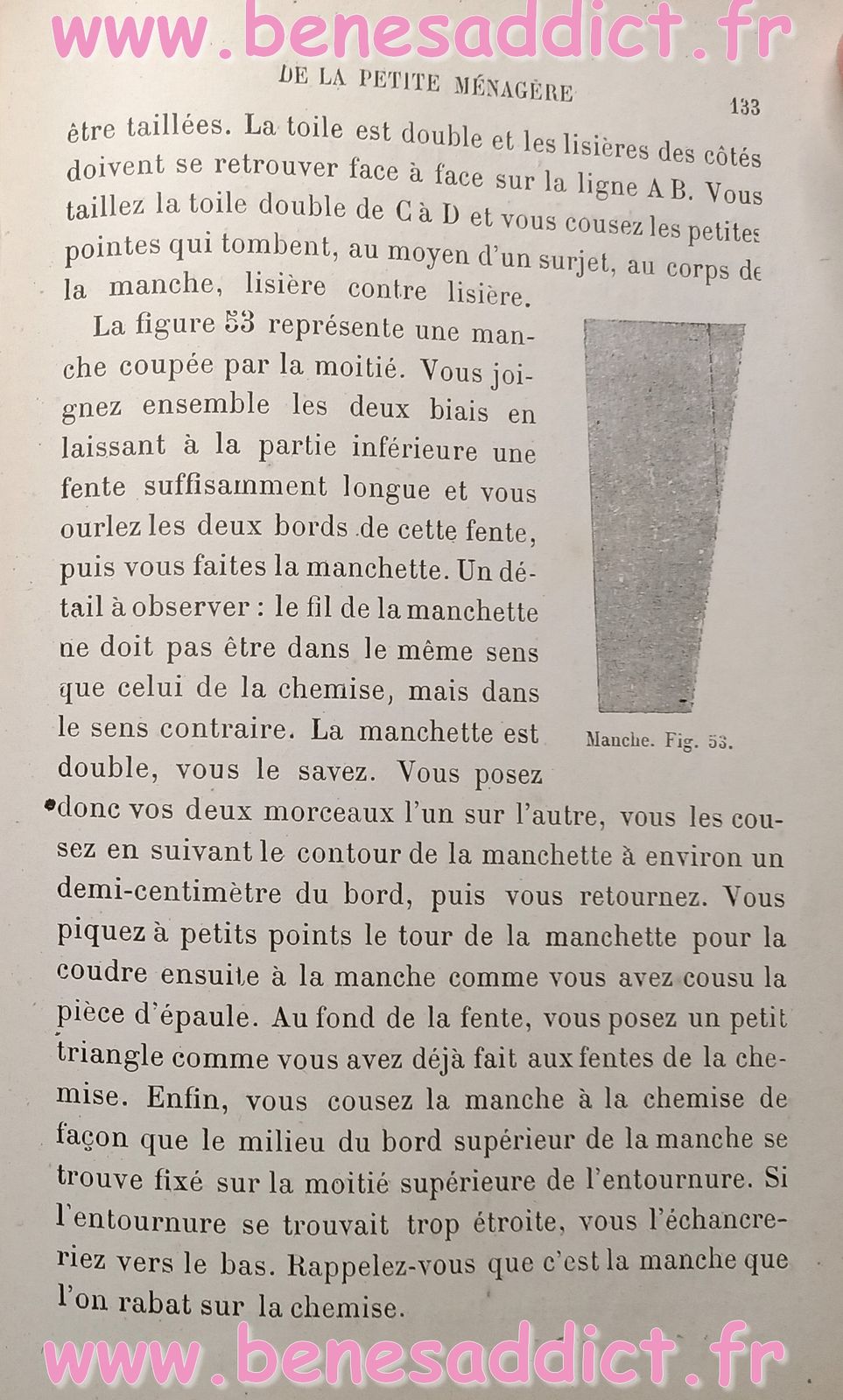 Dans ce chapitre, les coutures à la main, ainsi que les points de broderie, tout comme le raccommodage, mais aussi le reprisage font parti de l’enseignement des jeunes filles. Mais encore comment réaliser une chemise pour homme, et une chemise de nuit pour femme…. Le tricot, tout comme le crochet ont aussi la part belle au travers de ces multiples pages.