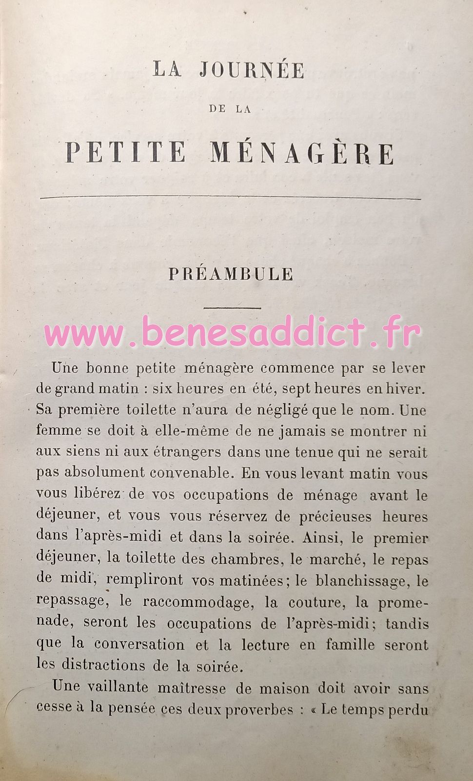 Comment était rythmée la journée d’une jeune épouse, ou maman. Pas de temps pour l’oisiveté, comme vous pourrez le lire à travers les pages de ce recueil.