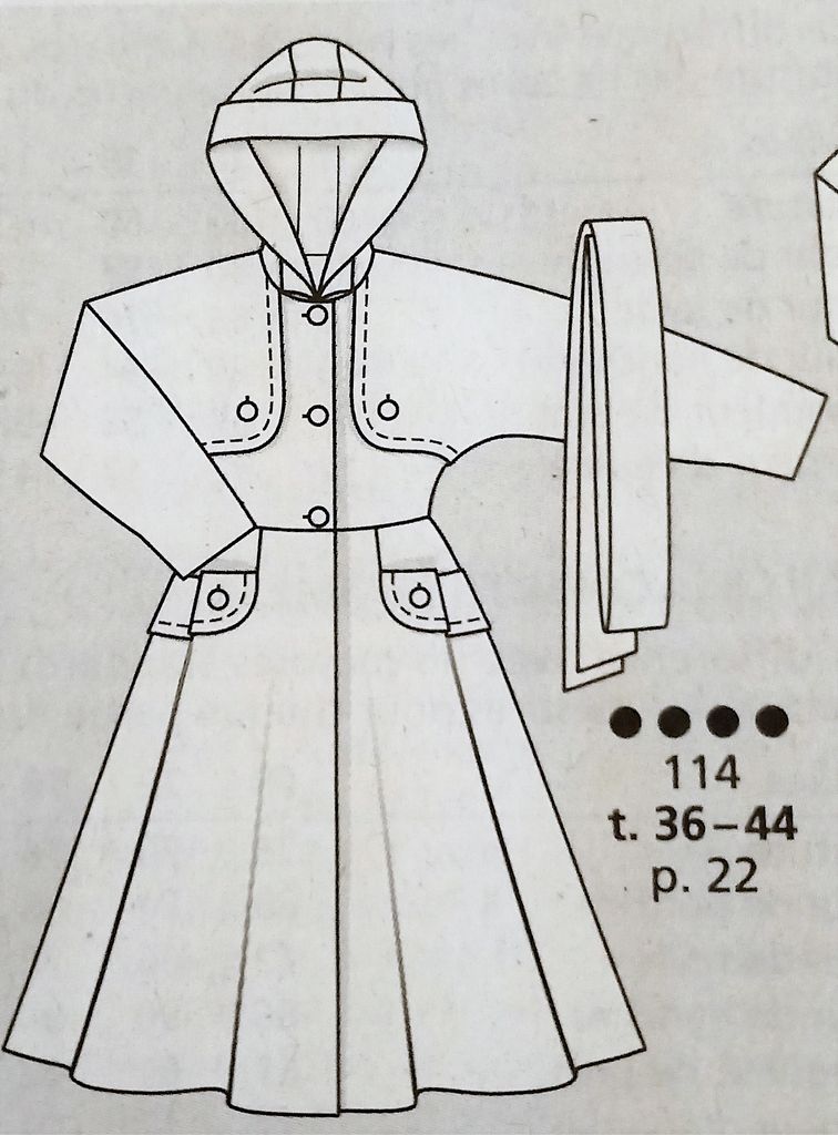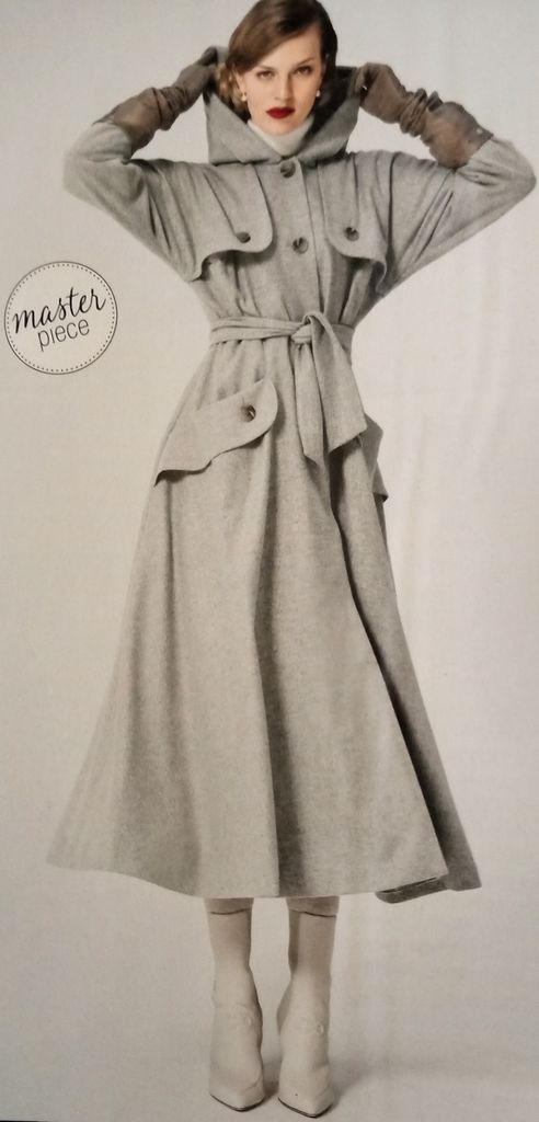 Dernier de mon top pour ce trench, revisité. Les manches sont encore ici coupées à même, elle se termine sur le devant par deux bavolets. Il comporte une grande capuche. La coupe en cloche du bas permet de jouer avec les matières souples ou plus raides. De grandes poches avec des rabats viennent ajouter une touche d’élégance. Une large ceinture à nouer vient cacher la couture de taille. ce trench va de la taille 36 au 44.